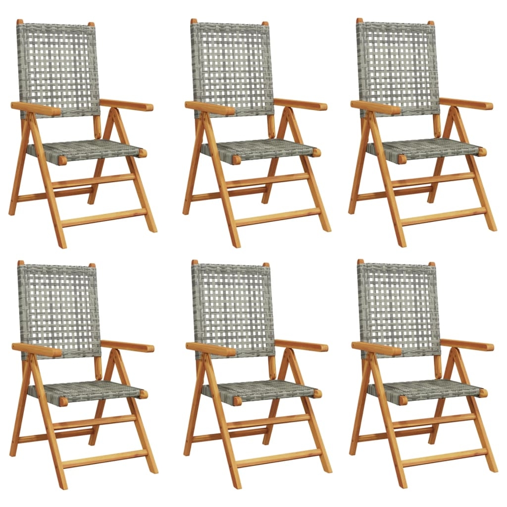 Entspanne dich und genieße die Natur in diesen bequemen Gartenstühlen! Robust und stabil: Massives Akazienholz ist für seine Festigkeit und Haltbarkeit bekannt. Seine vielfältige Farbe und seine einzigartige Maserung verleihen ihm eine attraktive Optik. Dank seiner ausgezeichneten Stabilität und Witterungsbeständigkeit eignet es sich ideal für die Herstellung von Innen- und Außenmöbeln.Langlebiges Material: PE-Rattan, auch als Poly Rattan bekannt, ist ein robustes, pflegeleichtes synthetisches Material, das die Optik von natürlichem Rattan aufweist. Es kennzeichnet sich durch ein geringes Eigengewicht und lässt sich einfach reinigen. Aufgrund seiner Haltbarkeit und Witterungsbeständigkeit wird es häufig bei der Herstellung von Gartenmöbeln verwendet.Liegefunktion: Der Gartenstuhl ist mit Liegefunktion ausgestattet, sodass sich die Rückenlehne je nach Bedarf verstellen lässt.Einfacher Transport und einfache Lagerung: Der Stuhl lässt sich bei Nichtgebrauch einfach zusammenklappen, um die Lagerung und den Transport zu erleichtern.Praktisches Design: Auf den praktischen Armlehnen aus Holz kannst du deine Arme bequem ausruhen, um deine Freizeit besser zu genießen. Gut zu wissen:Wir empfehlen dir, deine Gartenmöbel mit einer wasserdichten Hülle zu schützen, um lange Zeit eine ansprechende Optik aufzuweisen.