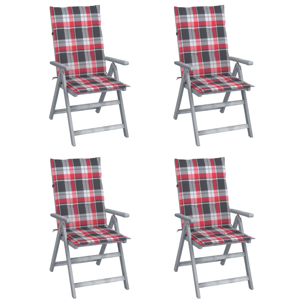 Diese trendigen Outdoor-Stühle erhöhen deinen Komfort im Outdoor-Bereich! Diese Outdoor-Armlehnstühle in Grau bestehen aus massivem Akazienholz, einem Hartholz mit dichter Maserung. Diese formschönen Hochlehner sind stabil, langlebig und schön. Die Rückenlehne des Gartenstuhls lässt sich in 5 Stufen verstellen, damit du stets die bequemste Position einnehmen kannst. Darüber hinaus sorgen die mitgelieferten Auflagen für zusätzlichen Komfort beim Faulenzen oder bei den Mahlzeiten. Jede Auflage verfügt über ein Gummiband und zwei Kordel-Sätze, um sie am Stuhl zu befestigen. Diese Stühle eignen sich perfekt zum Essen mit der Familie oder einfach zum Genießen des Wetters im Garten.