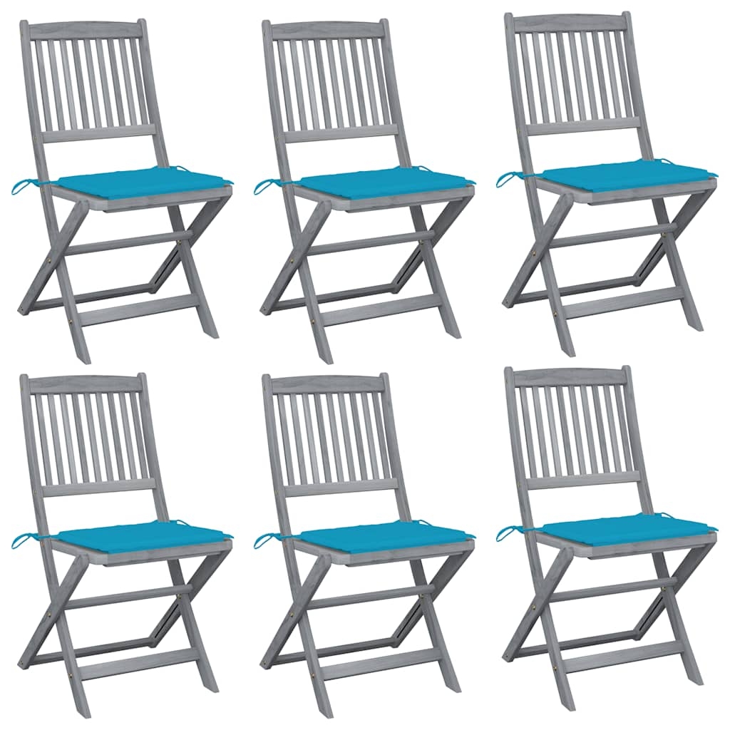 Dieses moderne Set aus Holz-Gartenstühlen mit Sitzpolstern verleiht Ihrem Garten, Ihrer Terrasse oder Ihrem Hof einen Hauch von natürlichem Stil und ist außerdem eine ausgezeichnete Wahl für Mahlzeiten im Freien. Diese Essstühle bestehen aus massivem Akazienholz, einem tropischen Hartholz, was die Stühle witterungsbeständig macht und eine jahrelange Lebensdauer gewährleistet, da massives Akazienholz sowohl belastbar als auch verschleißfest ist. Die grau lasierte Oberfläche ist ganz einfach mit einem feuchten Tuch zu reinigen. Bei Nichtgebrauch lassen sich die Stühle platzsparend zusammenklappen. Darüber hinaus bieten die mitgelieferten Sitzkissen zusätzlichen Komfort beim Entspannen oder Speisen. Zur sicheren Befestigung am Stuhl ist jedes Sitzpolster mit je zwei Bindebändern an zwei Ecken versehen.
