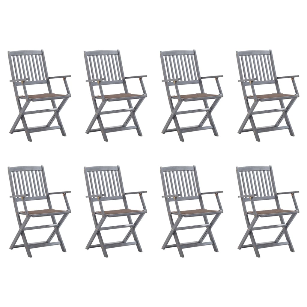 Dieses moderne Set aus Holz-Gartenstühlen mit Sitzpolstern verleiht Ihrem Garten, Ihrer Terrasse oder Ihrem Hof einen Hauch von natürlichem Stil und ist außerdem eine ausgezeichnete Wahl für Mahlzeiten im Freien. Diese Essstühle bestehen aus massivem Akazienholz, einem tropischen Hartholz, was die Stühle witterungsbeständig macht und eine jahrelange Lebensdauer gewährleistet, da massives Akazienholz sowohl belastbar als auch verschleißfest ist. Die grau lasierte Oberfläche ist ganz einfach mit einem feuchten Tuch zu reinigen. Bei Nichtgebrauch lassen sich die Stühle platzsparend zusammenklappen. Darüber hinaus bieten die mitgelieferten Sitzkissen zusätzlichen Komfort beim Entspannen oder Speisen. Zur sicheren Befestigung am Stuhl ist jedes Sitzpolster mit je zwei Bindebändern an zwei Ecken versehen. Hinweis: Um die Lebensdauer Ihrer Gartenmöbel zu verlängern, empfehlen wir Ihnen, diese regelmäßig zu reinigen und im Freien vor Niederschlägen oder starken Sonnenstrahlen zu schützen.Reinigung: Verwenden Sie eine milde SeifenlösungLagerung: Wenn möglich, an einem kühlen, trockenen Ort im Innenbereich lagern. Wenn das Produkt im Freien gelagert wird, schützen Sie es mit einer wasserdichten Abdeckung. Wischen und trocknen Sie das überschüssige Wasser oder den Schnee nach Regen oder Schneefall von ebenen Flächen. Sorgen Sie für eine ausreichende Luftzirkulation, um feuchtigkeitsbedingte Schäden zu vermeiden.