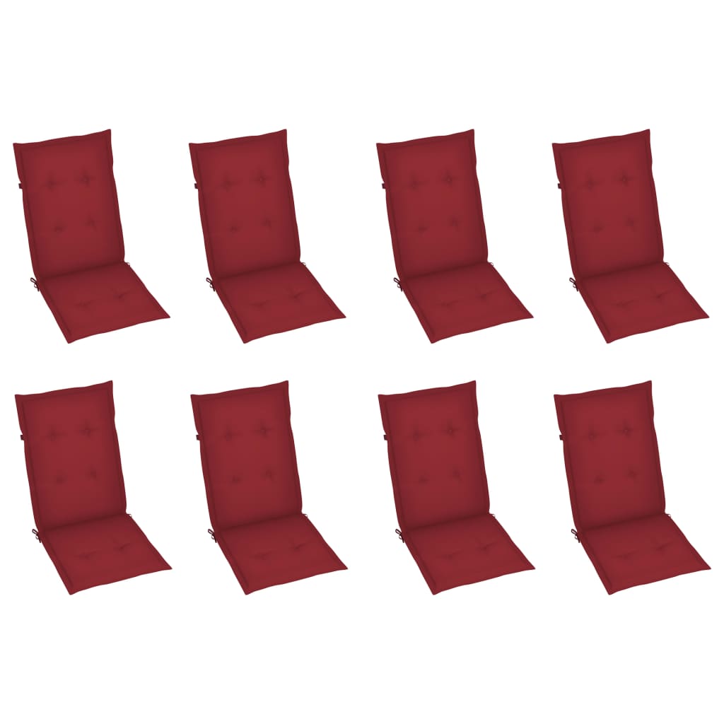 Dieses Holzstuhl-Set verleiht jedem Abendessen in Ihrem Garten oder auf Ihrer Terrasse einen Vintage-Look. Der Klappstuhl besteht aus massivem Akazienholz, einem tropischen Hartholz, was für Stabilität, Robustheit und Langlebigkeit sorgt. Die ölbehandelte Oberfläche lässt sich mit einem feuchten Tuch ganz einfach reinigen. Der Essstuhl lässt sich in 5 Positionen verstellen, um Ihnen optimalen Sitzkomfort zu bieten. Darüber hinaus kann er bei Nichtgebrauch platzsparend zusammengeklappt werden. Die mitgelieferten Kissen sorgen für zusätzlichen Komfort. Hinweis: Um die Lebensdauer Ihrer Gartenmöbel zu verlängern, empfehlen wir Ihnen, diese regelmäßig zu reinigen und bei Nichtgebrauch im Freien abzudecken.Reinigung: Verwenden Sie eine milde SeifenlösungLagerung: Wenn möglich, an einem kühlen, trockenen Ort im Innenbereich lagern. Wenn das Produkt im Freien gelagert wird, schützen Sie es mit einer wasserdichten Abdeckung. Wischen und trocknen Sie das überschüssige Wasser oder den Schnee nach Regen oder Schneefall von der ebenen Fläche. Sorgen Sie für eine ausreichende Luftzirkulation, um feuchtigkeitsbedingte Schäden zu vermeiden.