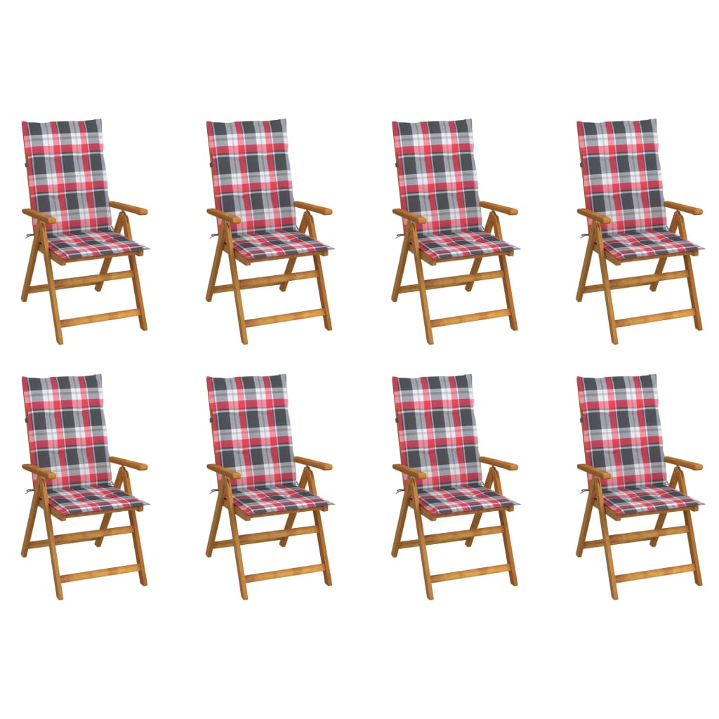 Dieses Holzstuhl-Set verleiht jedem Abendessen in Ihrem Garten oder auf Ihrer Terrasse einen Vintage-Look. Der Klappstuhl besteht aus massivem Akazienholz, einem tropischen Hartholz, was für Stabilität, Robustheit und Langlebigkeit sorgt. Die ölbehandelte Oberfläche lässt sich mit einem feuchten Tuch ganz einfach reinigen. Der Essstuhl lässt sich in 5 Positionen verstellen, um Ihnen optimalen Sitzkomfort zu bieten. Darüber hinaus kann er bei Nichtgebrauch platzsparend zusammengeklappt werden. Die mitgelieferten Kissen sorgen für zusätzlichen Komfort. Hinweis: Um die Lebensdauer Ihrer Gartenmöbel zu verlängern, empfehlen wir Ihnen, diese regelmäßig zu reinigen und bei Nichtgebrauch im Freien abzudecken.Reinigung: Verwenden Sie eine milde SeifenlösungLagerung: Wenn möglich, an einem kühlen, trockenen Ort im Innenbereich lagern. Wenn das Produkt im Freien gelagert wird, schützen Sie es mit einer wasserdichten Abdeckung. Wischen und trocknen Sie das überschüssige Wasser oder den Schnee nach Regen oder Schneefall von der ebenen Fläche. Sorgen Sie für eine ausreichende Luftzirkulation, um feuchtigkeitsbedingte Schäden zu vermeiden.