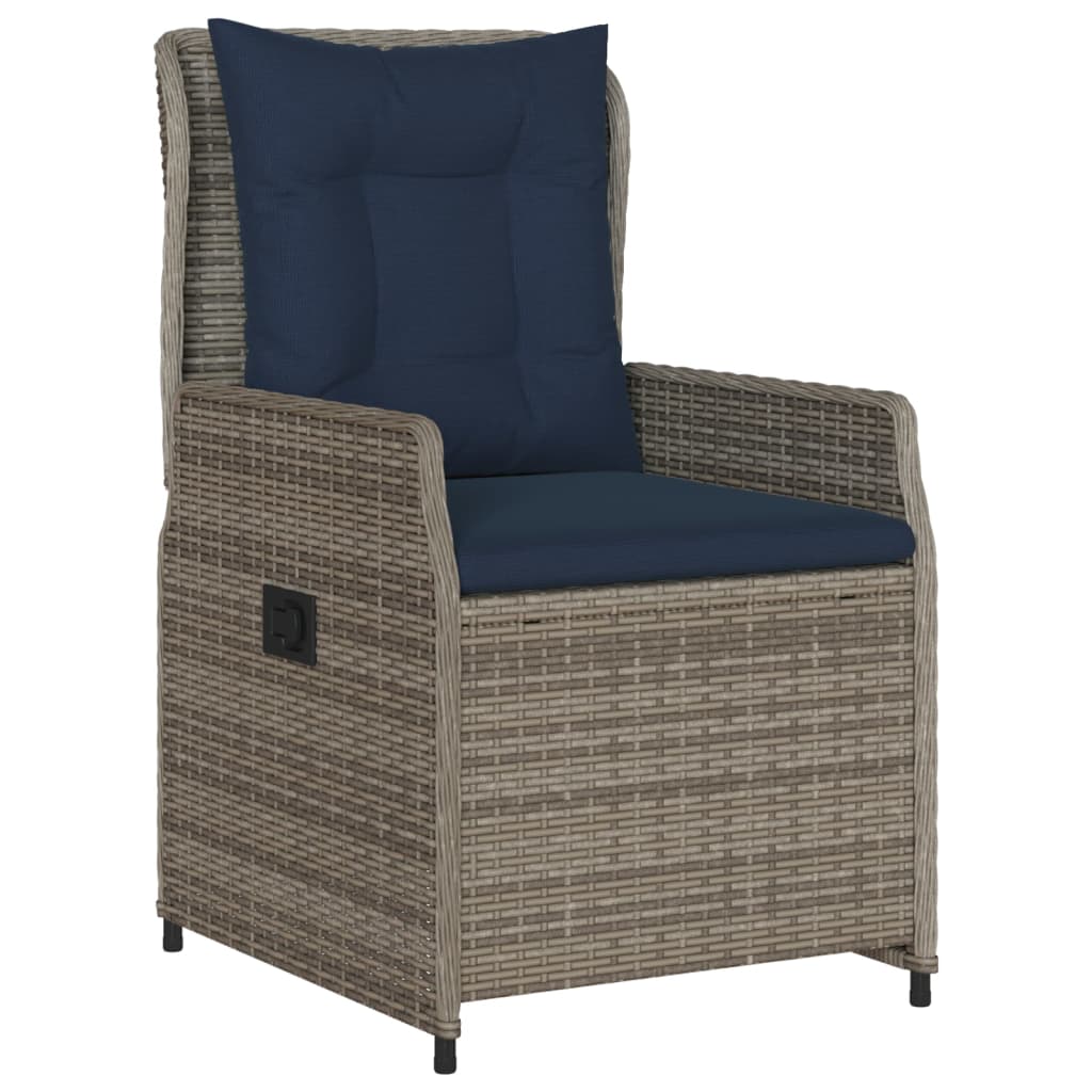 Entspannen Sie sich und genießen Sie die Natur in diesen bequemen, verstellbaren Gartenstühlen! Langlebiges Material: PE-Rattan, auch Polyrattan genannt, ist ein robustes, pflegeleichtes Kunststoffmaterial, das natürlichem Rattan ähnelt. Es ist leicht, einfach zu reinigen und wird aufgrund seiner Langlebigkeit und Wetterbeständigkeit häufig für Gartenmöbel verwendet. Verstellbare Rückenlehne: Dieser Gartensitz hat einen Griff. Durch Ziehen am Griff können Sie die Rückenlehne in jede beliebige Position bringen und schnell wieder in die Ausgangsposition zurückbringen. Bequemes Sitzgefühl: Diese Gartenmöbel mit dick gepolsterten Kissen bieten ein komfortables Sitzgefühl. Abnehmbarer und waschbarer Bezug: Das Sitzkissen verfügt über einen abnehmbaren Bezug für einfaches Waschen und Pflegen. Robuster und stabiler Rahmen: Der pulverbeschichtete Stahlrahmen sorgt dafür, dass die Gartenmöbel robust und stabil für den täglichen Gebrauch im Freien sind. Gut zu wissen:Damit Ihre Gartenmöbel lange schön bleiben, empfehlen wir Ihnen, sie mit einer wasserdichten Abdeckung zu schützen.