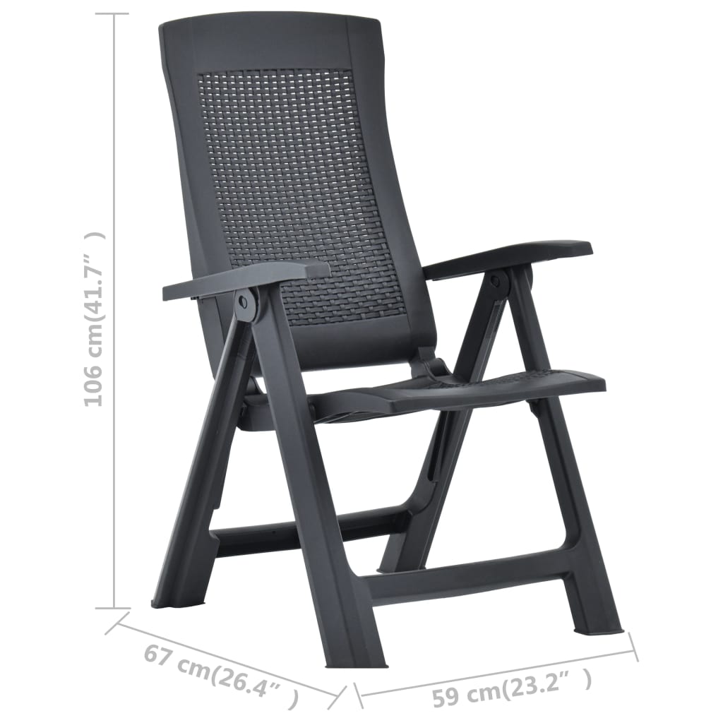 Erhöhen Sie den Komfort Ihres Außenbereichs mit diesem stilvollen Gartenstuhl-Set. Es ist ideal geeignet, um mit Familie und Freunden zu plaudern oder einfach nur ein entspannendes Sonnenbad zu genießen! Die verstellbaren Stühle bestehen aus strapazierfähigem Kunststoff, was sie wetterbeständig und leicht zu reinigen macht. Die Stuhllehne ist verstellbar, sodass Sie immer eine bequeme Sitzposition finden werden. Sie sind leicht und lassen sich daher einfach transportieren. Bei Nichtgebrauch können Sie sie zusammenklappen, um Platz zu sparen. Die Lieferung umfasst 2 Stühle.