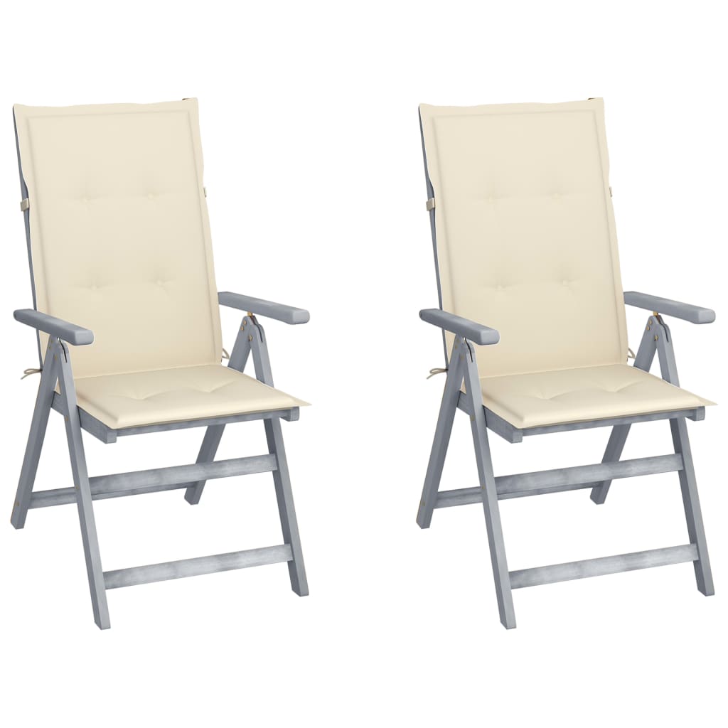 Diese trendigen Outdoor-Stühle erhöhen deinen Komfort im Outdoor-Bereich! Diese Stühle bestehen aus massivem Akazienholz, einem Hartholz mit dichter Maserung, das mit einer grauer Lackierung versehen wurde. Daher sind diese wunderschön gestalteten Outdoor-Stühle besonders stabil, langlebig und auffällig. Die Rückenlehnen der Stühle lassen sich in 5 Positionen einstellen, sodass Sie stets die bequemste Position finden können. Darüber hinaus bieten die mitgelieferten Auflagen zusätzlichen Komfort beim Entspannen. Sie bestehen aus 100 % Polyester, das wasserdicht behandelt wurde. Jede Auflage verfügt über ein Gummiband und je zwei Bänder an zwei Ecken zur festen Befestigung am Stuhl. Diese Holzstühle eignen sich perfekt, um mit Ihrer Familie zu speisen oder einfach nur das Wetter in Ihrem Garten zu genießen.