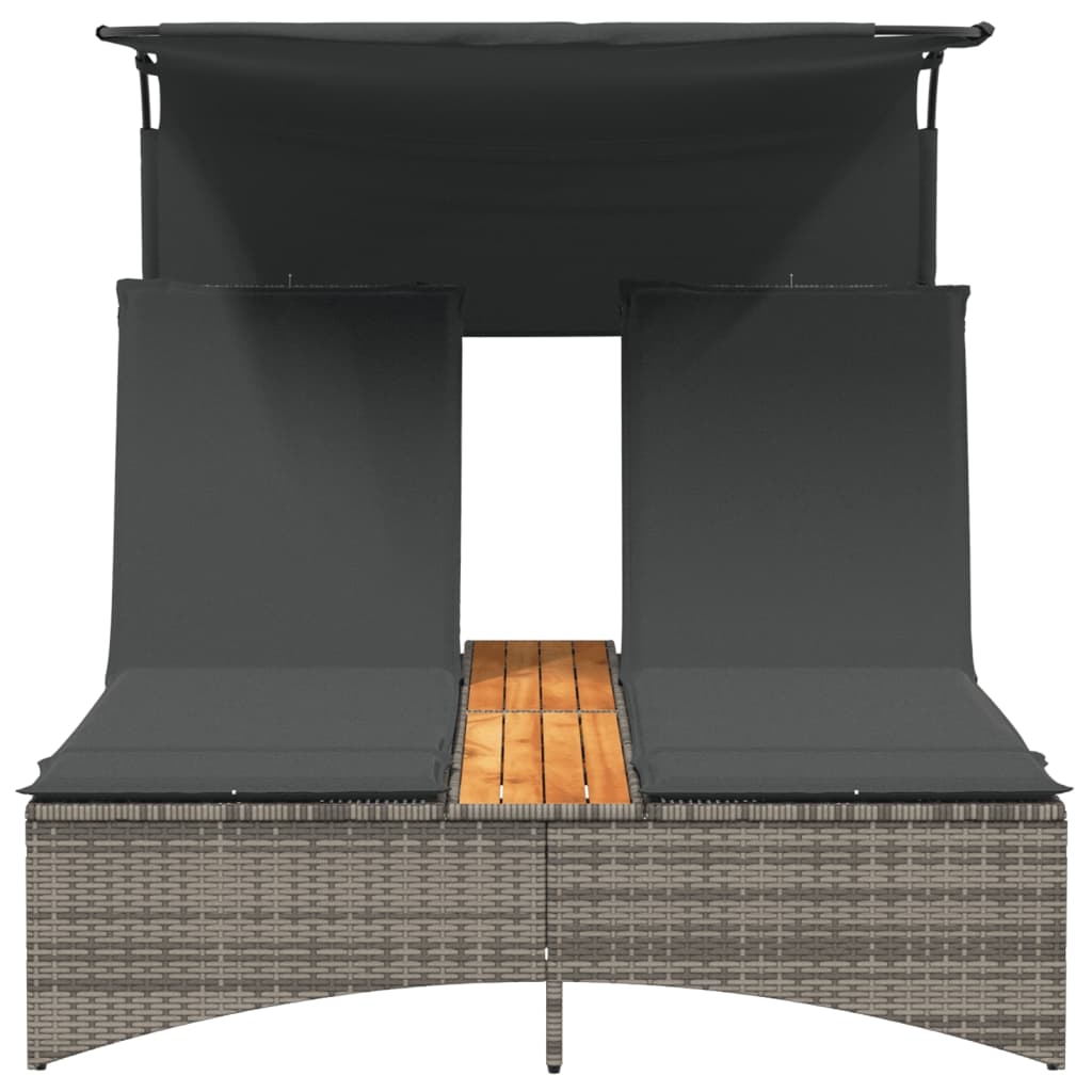 Entspanne dich und genieße deinen Außenbereich auf dieser bequemen Doppelliege! Langlebiges Material: PE-Rattan, auch als Poly Rattan bekannt, ist ein robustes, pflegeleichtes synthetisches Material, das die Optik von natürlichem Rattan aufweist. Es kennzeichnet sich durch ein geringes Eigengewicht und lässt sich einfach reinigen. Aufgrund seiner Haltbarkeit und Witterungsbeständigkeit wird es häufig bei der Herstellung von Gartenmöbeln verwendet.Verstellbare Rückenlehne: Diese Sonnenliege verfügt über 5-fach verstellbare Rückenlehnen, um stets ganz einfach die bequemste und geeignetste Position zum Entspannen zu finden.Mit Sonnenschutz: Dank des Sonnendaches genießt du den ganzen Tag angenehmen Schatten in deinem Außenbereich.Bequemes Sitzerlebnis: Dieser Gartensessel mit dick gepolsterten Kissen bietet ein angenehmes Sitzgefühl.Abnehmbarer und waschbarer Bezug: Diese Sitzkissen verfügen über abnehmbare Bezüge für einfaches Waschen und Pflegen. Gut zu wissen:Wir empfehlen dir, deine Gartenmöbel mit einer wasserdichten Hülle zu schützen, um lange Zeit eine ansprechende Optik aufzuweisen.