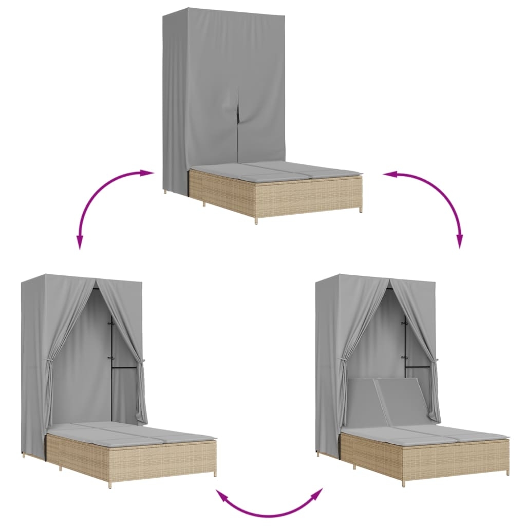 Entspanne dich und genieße deinen Außenbereich auf dieser bequemen Doppelliege! Langlebiges Material: PE-Rattan, auch als Poly Rattan bekannt, ist ein robustes, pflegeleichtes synthetisches Material, das die Optik von natürlichem Rattan aufweist. Es kennzeichnet sich durch ein geringes Eigengewicht und lässt sich einfach reinigen. Aufgrund seiner Haltbarkeit und Witterungsbeständigkeit wird es häufig bei der Herstellung von Gartenmöbeln verwendet.Verstellbare Rückenlehne: Dieses Möbelstück verfügt über eine 4-fach verstellbare Rückenlehne, um stets ganz einfach die bequemste und geeignetste Position zum Entspannen zu finden.Praktisches Dach und Vorhänge: Dank Dach und Vorhänge genießt du den ganzen Tag über ein kühles und angenehmes Plätzchen in deinem Außenbereich.Bequemes Sitzerlebnis: Dieser Gartensessel mit dick gepolsterten Kissen bietet ein angenehmes Sitzgefühl.Abnehmbarer und waschbarer Bezug: Diese Sitzkissen verfügen über abnehmbare Bezüge für einfaches Waschen und Pflegen. Gut zu wissen:Wir empfehlen dir, deine Gartenmöbel mit einer wasserdichten Hülle zu schützen, um lange Zeit eine ansprechende Optik aufzuweisen.