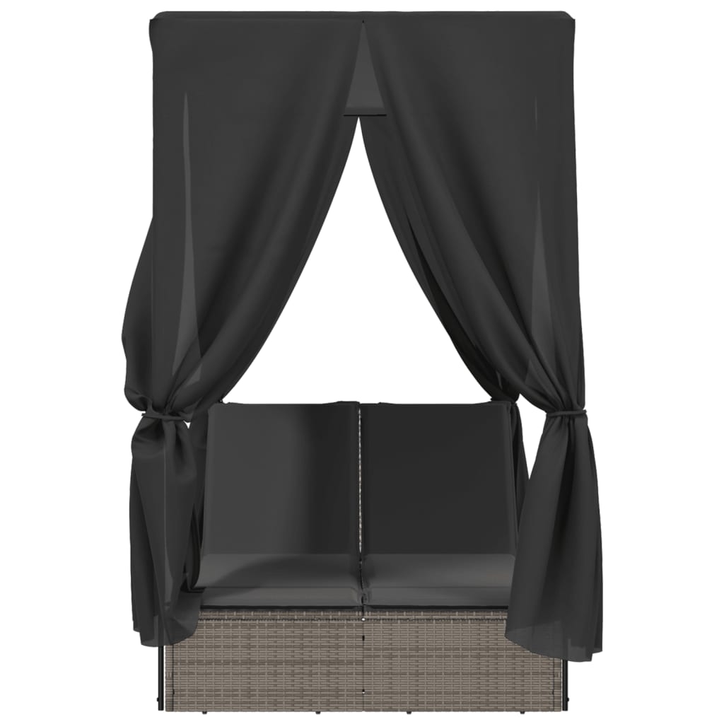 Entspanne dich und genieße deinen Außenbereich auf dieser bequemen Doppelliege! Langlebiges Material: PE-Rattan, auch als Poly Rattan bekannt, ist ein robustes, pflegeleichtes synthetisches Material, das die Optik von natürlichem Rattan aufweist. Es kennzeichnet sich durch ein geringes Eigengewicht und lässt sich einfach reinigen. Aufgrund seiner Haltbarkeit und Witterungsbeständigkeit wird es häufig bei der Herstellung von Gartenmöbeln verwendet.Verstellbare Rückenlehne: Dieses Möbelstück verfügt über eine 4-fach verstellbare Rückenlehne, um stets ganz einfach die bequemste und geeignetste Position zum Entspannen zu finden.Praktisches Dach und Vorhänge: Dank Dach und Vorhänge genießt du den ganzen Tag über ein kühles und angenehmes Plätzchen in deinem Außenbereich.Bequemes Sitzerlebnis: Dieser Gartensessel mit dick gepolsterten Kissen bietet ein angenehmes Sitzgefühl.Abnehmbarer und waschbarer Bezug: Diese Sitzkissen verfügen über abnehmbare Bezüge für einfaches Waschen und Pflegen. Gut zu wissen:Wir empfehlen dir, deine Gartenmöbel mit einer wasserdichten Hülle zu schützen, um lange Zeit eine ansprechende Optik aufzuweisen.