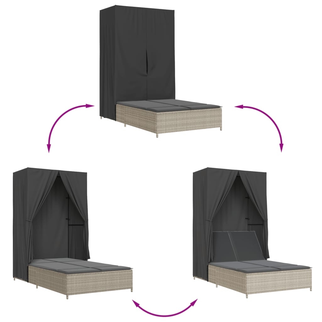 Entspanne dich und genieße deinen Außenbereich auf dieser bequemen Doppelliege! Langlebiges Material: PE-Rattan, auch als Poly Rattan bekannt, ist ein robustes, pflegeleichtes synthetisches Material, das die Optik von natürlichem Rattan aufweist. Es kennzeichnet sich durch ein geringes Eigengewicht und lässt sich einfach reinigen. Aufgrund seiner Haltbarkeit und Witterungsbeständigkeit wird es häufig bei der Herstellung von Gartenmöbeln verwendet.Verstellbare Rückenlehne: Dieses Möbelstück verfügt über eine 4-fach verstellbare Rückenlehne, um stets ganz einfach die bequemste und geeignetste Position zum Entspannen zu finden.Praktisches Dach und Vorhänge: Dank Dach und Vorhänge genießt du den ganzen Tag über ein kühles und angenehmes Plätzchen in deinem Außenbereich.Bequemes Sitzerlebnis: Dieser Gartensessel mit dick gepolsterten Kissen bietet ein angenehmes Sitzgefühl.Abnehmbarer und waschbarer Bezug: Diese Sitzkissen verfügen über abnehmbare Bezüge für einfaches Waschen und Pflegen. Gut zu wissen:Wir empfehlen dir, deine Gartenmöbel mit einer wasserdichten Hülle zu schützen, um lange Zeit eine ansprechende Optik aufzuweisen.