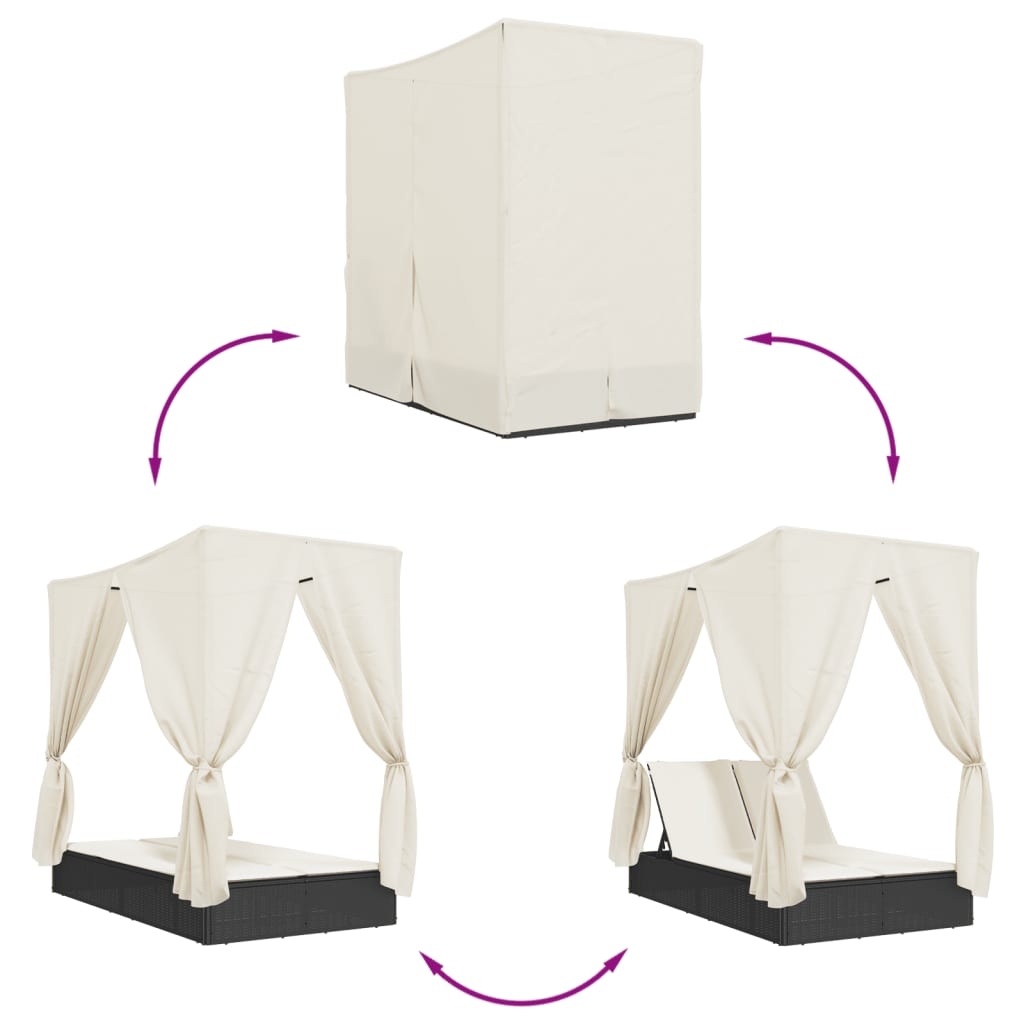 Entspanne dich und genieße deinen Außenbereich auf dieser bequemen Doppelliege! Langlebiges Material: PE-Rattan, auch als Poly Rattan bekannt, ist ein robustes, pflegeleichtes synthetisches Material, das die Optik von natürlichem Rattan aufweist. Es kennzeichnet sich durch ein geringes Eigengewicht und lässt sich einfach reinigen. Aufgrund seiner Haltbarkeit und Witterungsbeständigkeit wird es häufig bei der Herstellung von Gartenmöbeln verwendet.Verstellbare Rückenlehne: Dieses Möbelstück verfügt über eine 4-fach verstellbare Rückenlehne, um stets ganz einfach die bequemste und geeignetste Position zum Entspannen zu finden.Praktisches Dach und Vorhänge: Dank Dach und Vorhänge genießt du den ganzen Tag über ein kühles und angenehmes Plätzchen in deinem Außenbereich.Bequemes Sitzerlebnis: Dieser Gartensessel mit dick gepolsterten Kissen bietet ein angenehmes Sitzgefühl.Abnehmbarer und waschbarer Bezug: Diese Sitzkissen verfügen über abnehmbare Bezüge für einfaches Waschen und Pflegen. Gut zu wissen:Wir empfehlen dir, deine Gartenmöbel mit einer wasserdichten Hülle zu schützen, um lange Zeit eine ansprechende Optik aufzuweisen.