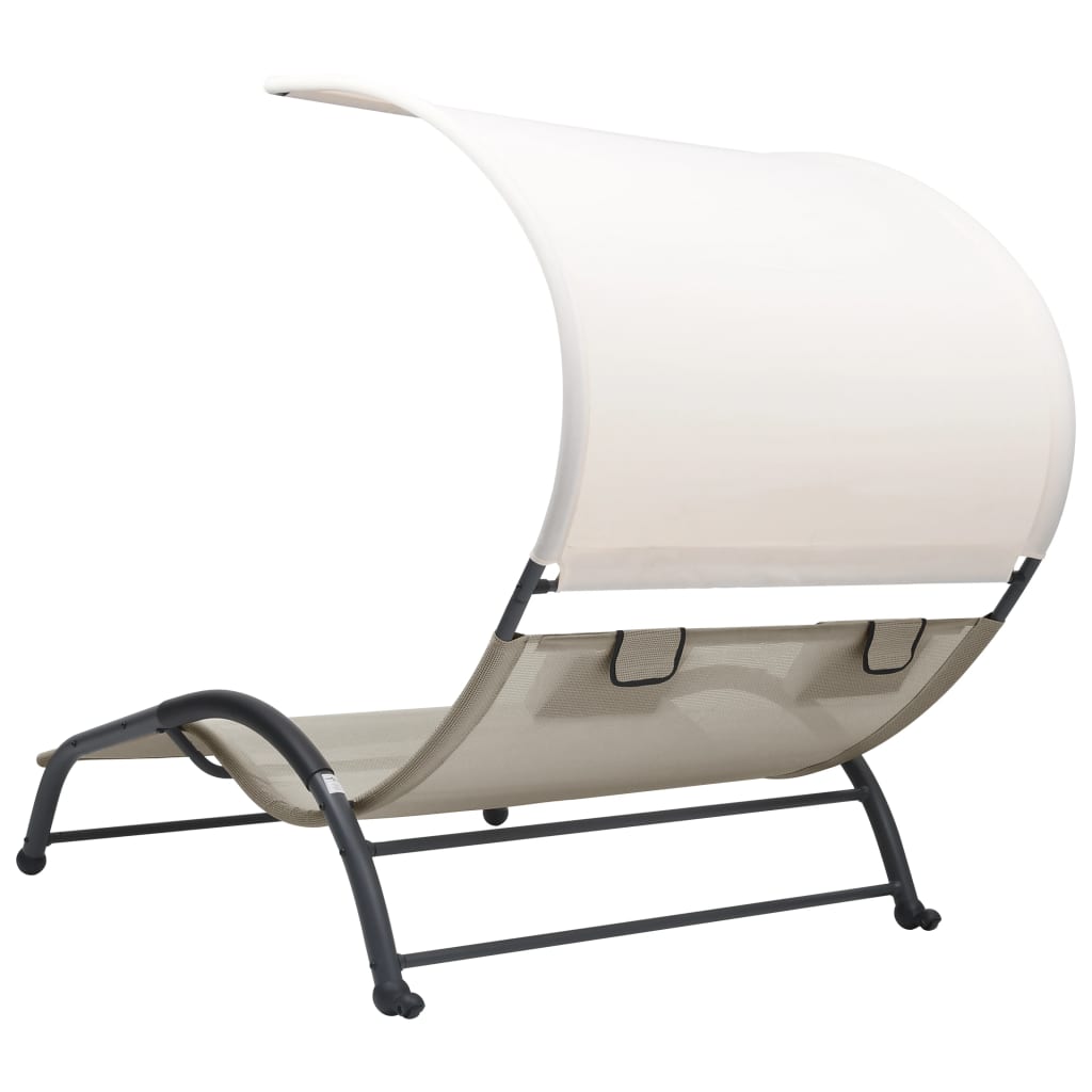 Ob du dich alleine oder zu zweit entspannen möchtest, diese Doppelliege ist eine hervorragende Wahl, sowohl für den Innen- als auch für den Außenbereich. Diese Sonnenliege verfügt über ein robustes Stahlgestell, das ihr hohe Stabilität verleiht und eine lange Lebensdauer gewährleistet. Das Sonnenbett ist aus robustem und atmungsaktivem Textilene-Gewebe gefertigt und bietet dir höchsten Komfort beim Entspannen. Die zwei mitgelieferten kleinen Kissen sorgen für zusätzlichen Komfort. Zudem schützt dich das Sonnendach vor schädlichen UV-Strahlen.
