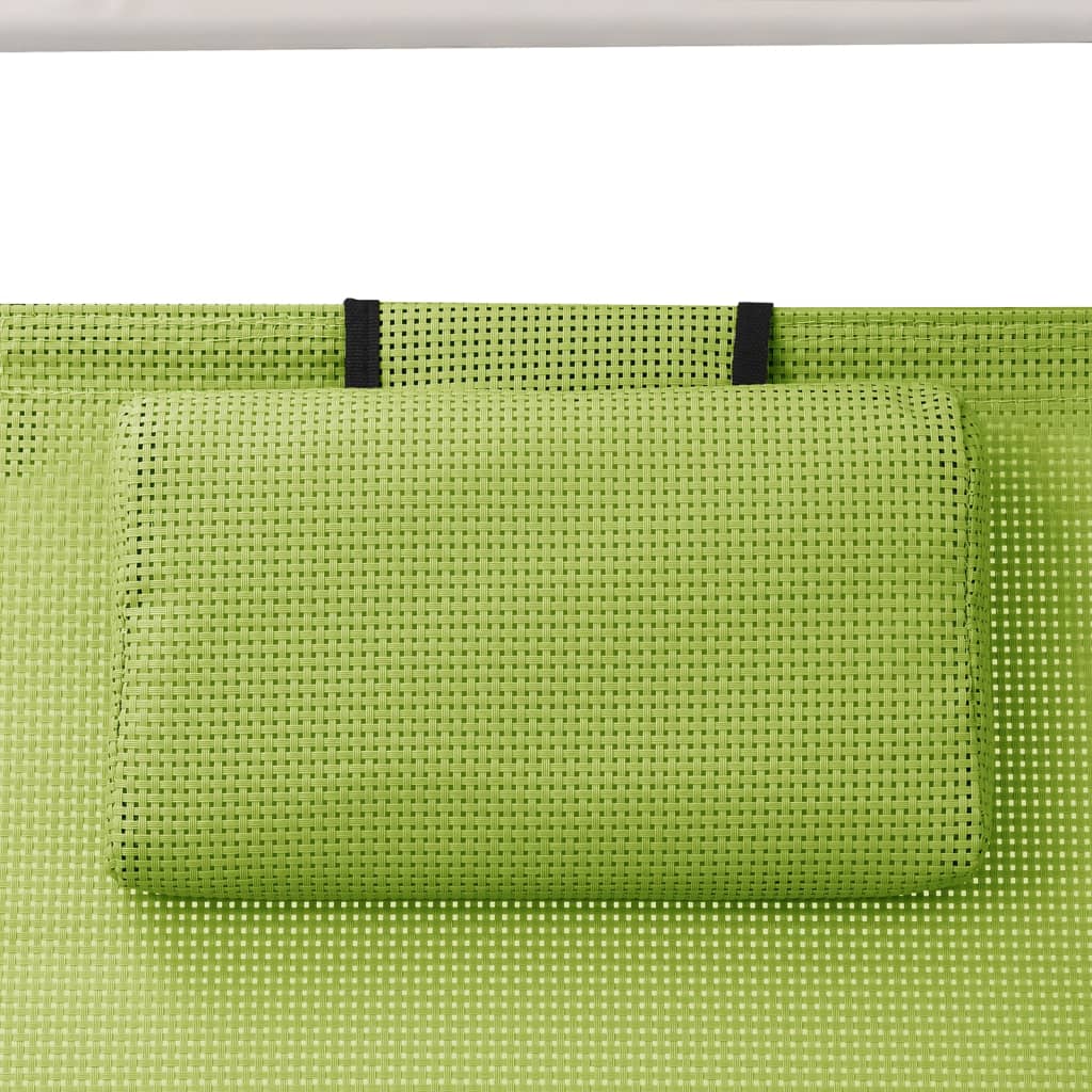 Ob du dich alleine oder zu zweit entspannen möchtest, diese Doppelliege ist eine hervorragende Wahl, sowohl für den Innen- als auch für den Außenbereich. Diese Sonnenliege verfügt über ein robustes Stahlgestell, das ihr hohe Stabilität verleiht und eine lange Lebensdauer gewährleistet. Das Sonnenbett ist aus robustem und atmungsaktivem Textilene-Gewebe gefertigt und bietet dir höchsten Komfort beim Entspannen. Die zwei mitgelieferten kleinen Kissen sorgen für zusätzlichen Komfort. Zudem schützt dich das Sonnendach vor schädlichen UV-Strahlen.