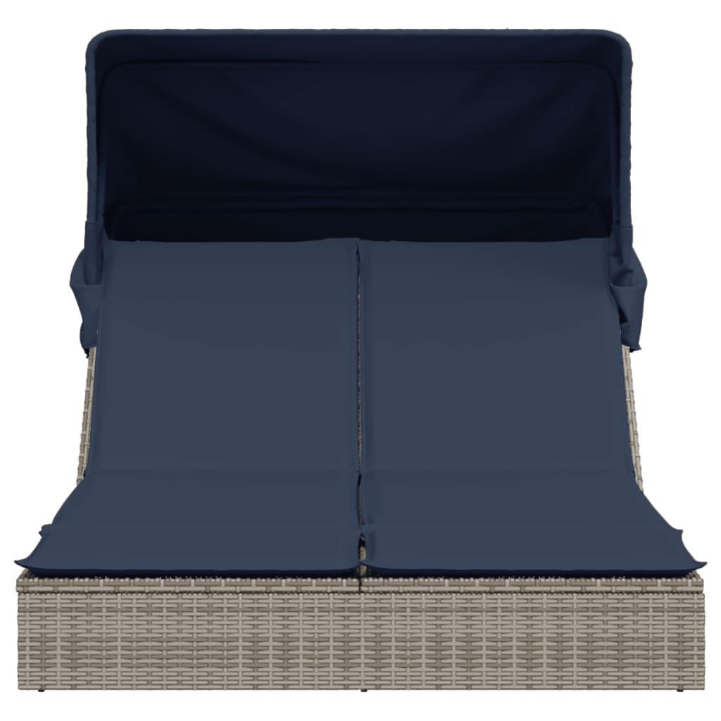 Entspannen Sie sich und genießen Sie die Natur in dieser bequemen Doppel-Sonnenliege! Langlebiges Material: PE-Rattan, auch als Polyrattan bekannt, ist ein robustes, pflegeleichtes synthetisches Material, das wie natürliches Rattan aussieht. Es ist leicht, einfach zu reinigen und wird aufgrund seiner Langlebigkeit und Wetterbeständigkeit häufig für Gartenmöbel verwendet. Verstellbare Rückenlehne: Dieses Gartenmöbel verfügt über eine Rückenlehne mit 2 verstellbaren Positionen, sodass Sie ganz einfach die bequemste und geeignetste Position zum Entspannen finden können.Einziehbares Verdeck: Dank des einziehbaren Verdecks können Sie den ganzen Tag über eine kühle, angenehme Umgebung im Freien schaffen. Bequemes Sitzerlebnis: Dieses Gartenmöbel mit dick gepolsterten Kissen bietet ein bequemes Sitzerlebnis. Abnehmbarer und waschbarer Bezug: Diese Sitzkissen verfügen über abnehmbare Bezüge für einfaches Waschen und Pflege. Gut zu wissen:Damit Ihre Gartenmöbel lange schön bleiben, empfehlen wir Ihnen, sie mit einer wasserdichten Abdeckung zu schützen.