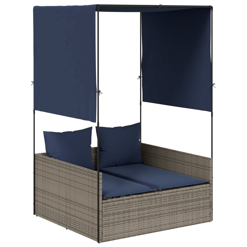 Entspannen Sie sich und genießen Sie die Natur auf dieser bequemen Doppel-Sonnenliege! Langlebiges Material: PE-Rattan, auch bekannt als Polyrattan, ist ein robustes, pflegeleichtes Kunststoffmaterial, das natürlichem Rattan ähnelt. Es ist leicht, einfach zu reinigen und wird aufgrund seiner Langlebigkeit und Wetterbeständigkeit häufig für Gartenmöbel verwendet.Praktisches Dach und Vorhänge: Dank Dach und Vorhängen schaffen Sie den ganzen Tag über eine kühle, angenehme Atmosphäre im Freien.Bequemes Sitzerlebnis: Das Gartenmöbel-Set mit dick gepolsterten Kissen bietet ein komfortables Sitzerlebnis.Abnehmbarer und waschbarer Bezug: Dieses Sitzkissen verfügt über einen abnehmbaren Bezug für einfaches Waschen und Pflegen. Gut zu wissen:Damit Ihre Gartenmöbel lange schön bleiben, empfehlen wir Ihnen, sie mit einer wasserdichten Abdeckung zu schützen.