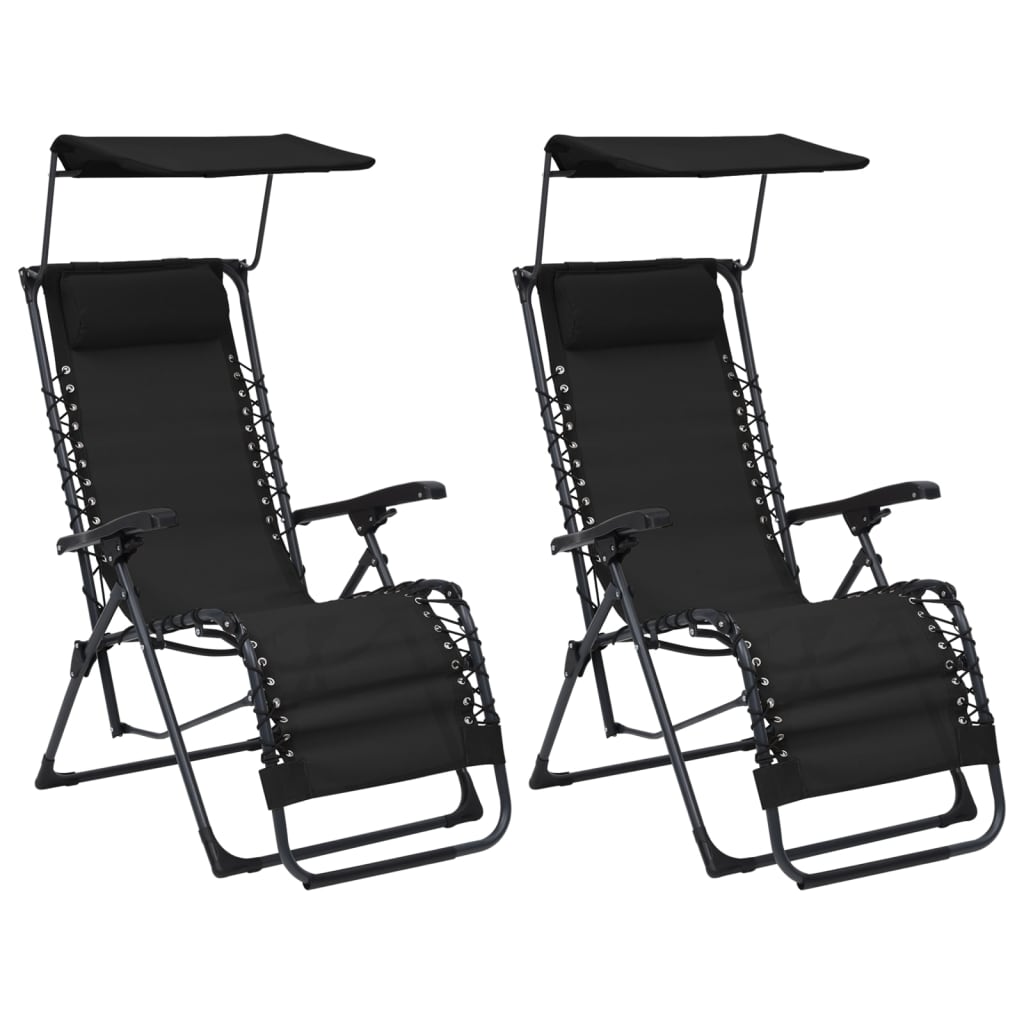 Dieses Set aus 2 Liegestühlen ist eine perfekte Kombination aus Stil und Funktionalität; somit eignet es sich hervorragend für Ihre Terrasse, Ihren Garten, Balkon oder andere Innen- und Außenbereiche. Die Gartenstühle verfügen über einen starken Stahlrahmen und eine pflegeleichte, witterungsbeständige Sitzfläche und Rückenlehne aus Textilene, das Ihnen viele Jahre Freude bereiten wird. Die gepolsterte Kopfstütze ist weich und bequem. Die Liegestühle mit Sonnendach spenden kühlen Schatten unter der Sonne. Da die Gartenstühle außerdem leicht sind, können sie leicht umstellt und bei Nichtgebrauch platzsparend zusammengeklappt verstaut werden. Hinweis: Um die Lebensdauer Ihrer Gartenmöbel zu verlängern, empfehlen wir Ihnen, diese regelmäßig zu reinigen und im Freien vor Niederschlägen oder starken Sonnenstrahlen zu schützen.Reinigung: Verwenden Sie eine milde Seifenlösung.Lagerung: Wenn möglich, an einem kühlen, trockenen Ort im Innenbereich lagern. Wenn das Produkt im Freien gelagert wird, schützen Sie es mit einer wasserdichten Abdeckung. Wischen und trocknen Sie das überschüssige Wasser oder den Schnee nach Regen oder Schneefall von ebenen Flächen. Sorgen Sie für eine ausreichende Luftzirkulation, um feuchtigkeitsbedingte Schäden zu vermeiden.