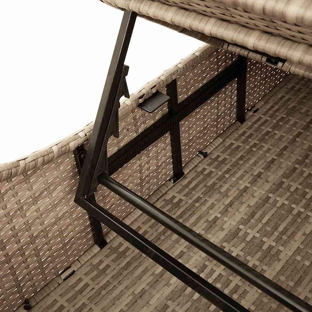 Entspanne dich und genieße deinen Außenbereich auf dieser bequemen Klappliege! Langlebiges Material: PE-Rattan, auch als Poly Rattan bekannt, ist ein robustes, pflegeleichtes synthetisches Material, das die Optik von natürlichem Rattan aufweist. Es kennzeichnet sich durch ein geringes Eigengewicht und lässt sich einfach reinigen. Aufgrund seiner Haltbarkeit und Witterungsbeständigkeit wird es häufig bei der Herstellung von Gartenmöbeln verwendet.Verstellbare Rückenlehne: Dieses Möbelstück verfügt über eine 3-fach verstellbare Rückenlehne, um stets die bequemste Position zum Entspannen zu finden.Platzsparend faltbares Design: Das Kopf- und Fußteil der Gartenliege lässt sich mittig zu einer Aufbewahrungsbox mit zwei getrennten oberen und unteren Ablagefächern zusammenklappen und ist mit 2 wasserfesten Taschen zum Verstauen von Kissen ausgestattet. Die Innentasche kann mit Klettverschlüssen sicher am Sitz befestigt werden, was für Stabilität sorgt und ein Verrutschen verhindert.Bequemes Sitzerlebnis: Dank des dick gepolsterten Kissens bietet dieser Gartenhocker höchsten Sitzkomfort.Abnehmbarer und waschbarer Bezug: Das Sitzkissen verfügt über einen abnehmbaren Bezug, der sich ganz einfach waschen und pflegen lässt. Gut zu wissen:Wir empfehlen dir, deine Gartenmöbel mit einer wasserdichten Hülle zu schützen, um lange Zeit eine ansprechende Optik aufzuweisen.