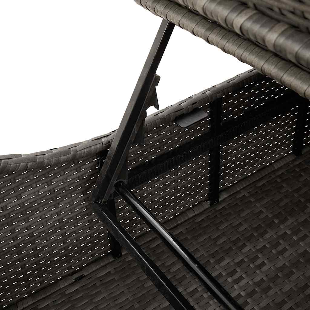 Entspanne dich und genieße deinen Außenbereich auf dieser bequemen Klappliege! Langlebiges Material: PE-Rattan, auch als Poly Rattan bekannt, ist ein robustes, pflegeleichtes synthetisches Material, das die Optik von natürlichem Rattan aufweist. Es kennzeichnet sich durch ein geringes Eigengewicht und lässt sich einfach reinigen. Aufgrund seiner Haltbarkeit und Witterungsbeständigkeit wird es häufig bei der Herstellung von Gartenmöbeln verwendet.Verstellbare Rückenlehne: Dieses Möbelstück verfügt über eine 3-fach verstellbare Rückenlehne, um stets die bequemste Position zum Entspannen zu finden.Platzsparend faltbares Design: Das Kopf- und Fußteil der Gartenliege lässt sich mittig zu einer Aufbewahrungsbox mit zwei getrennten oberen und unteren Ablagefächern zusammenklappen und ist mit 2 wasserfesten Taschen zum Verstauen von Kissen ausgestattet. Die Innentasche kann mit Klettverschlüssen sicher am Sitz befestigt werden, was für Stabilität sorgt und ein Verrutschen verhindert.Bequemes Sitzerlebnis: Dank des dick gepolsterten Kissens bietet dieser Gartenhocker höchsten Sitzkomfort.Abnehmbarer und waschbarer Bezug: Das Sitzkissen verfügt über einen abnehmbaren Bezug, der sich ganz einfach waschen und pflegen lässt. Gut zu wissen:Wir empfehlen dir, deine Gartenmöbel mit einer wasserdichten Hülle zu schützen, um lange Zeit eine ansprechende Optik aufzuweisen.