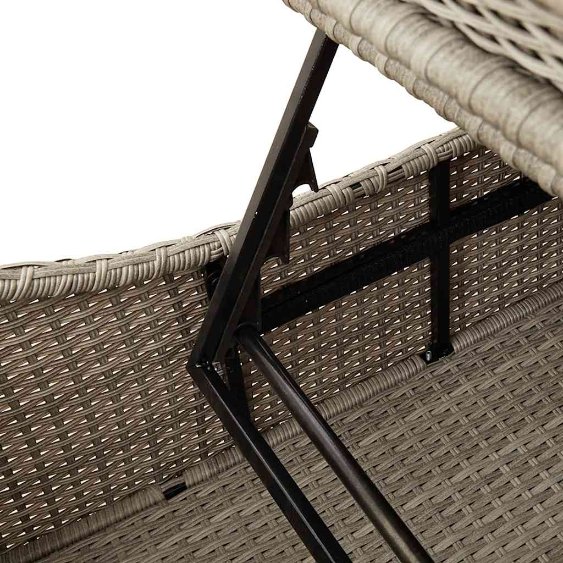 Entspanne dich und genieße deinen Außenbereich auf dieser bequemen Klappliege! Langlebiges Material: PE-Rattan, auch als Poly Rattan bekannt, ist ein robustes, pflegeleichtes synthetisches Material, das die Optik von natürlichem Rattan aufweist. Es kennzeichnet sich durch ein geringes Eigengewicht und lässt sich einfach reinigen. Aufgrund seiner Haltbarkeit und Witterungsbeständigkeit wird es häufig bei der Herstellung von Gartenmöbeln verwendet.Verstellbare Rückenlehne: Dieses Möbelstück verfügt über eine 3-fach verstellbare Rückenlehne, um stets die bequemste Position zum Entspannen zu finden.Platzsparend faltbares Design: Das Kopf- und Fußteil der Gartenliege lässt sich mittig zu einer Aufbewahrungsbox mit zwei getrennten oberen und unteren Ablagefächern zusammenklappen und ist mit 2 wasserfesten Taschen zum Verstauen von Kissen ausgestattet. Die Innentasche kann mit Klettverschlüssen sicher am Sitz befestigt werden, was für Stabilität sorgt und ein Verrutschen verhindert.Bequemes Sitzerlebnis: Dank des dick gepolsterten Kissens bietet dieser Gartenhocker höchsten Sitzkomfort.Abnehmbarer und waschbarer Bezug: Das Sitzkissen verfügt über einen abnehmbaren Bezug, der sich ganz einfach waschen und pflegen lässt. Gut zu wissen:Wir empfehlen dir, deine Gartenmöbel mit einer wasserdichten Hülle zu schützen, um lange Zeit eine ansprechende Optik aufzuweisen.
