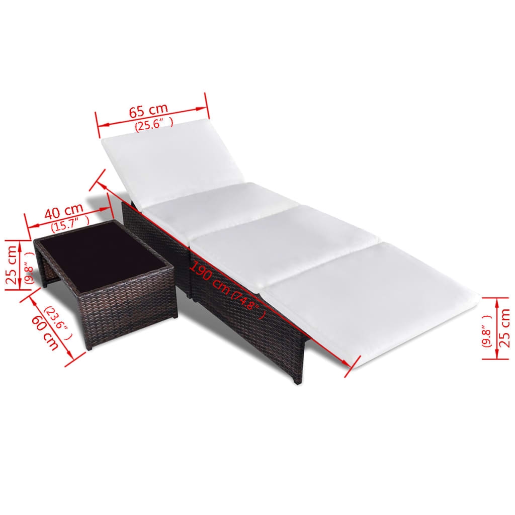 - Abmessungen Sonnenliege: 190 x 65 cm (L x B) – wenn die 2 Stühle vollständig ausgefahren und kombiniert werden