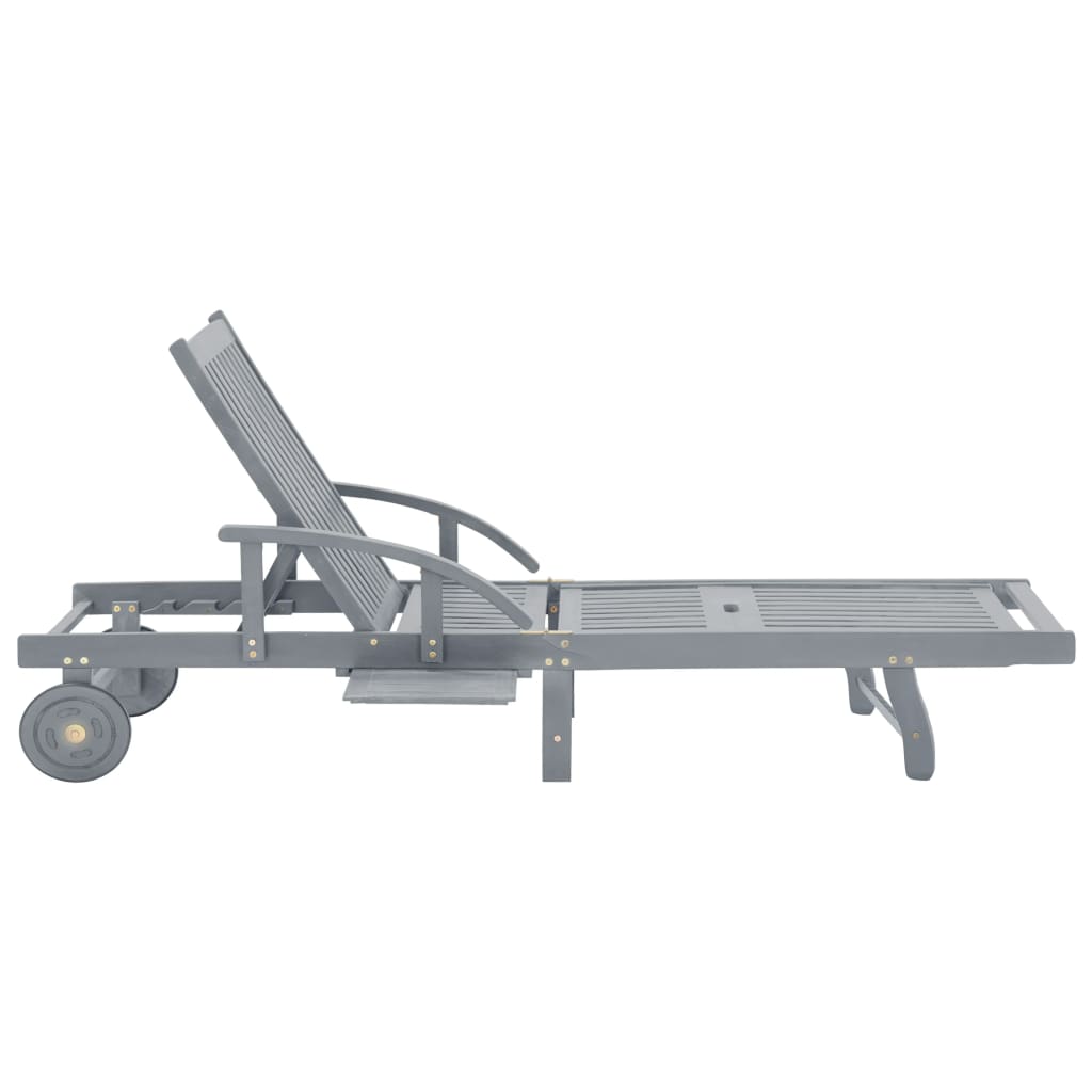 Entspanne dich im Garten oder auf der Terrasse auf dieser bequemen Sonnenliege aus Holz! So kannst du einen entspannten Nachmittag in deinem eigenen Außenbereich verbringen. Die Gartenliege findet den perfekten Platz neben dem Pool, auf dem Balkon, der Terrasse, im Garten usw. Diese Gartenliege besteht aus langlebigem Akazienholz, das mit einer grauen Lackierung versehen wurde und sich durch eine ausgezeichnete Witterungsbeständigkeit kennzeichnet. Die breiten Armlehnen, die hohe Rückenlehne und die konturierte Sitzfläche tragen nicht nur zur ansprechenden Optik bei, sondern sorgen auch für höchsten Sitz- oder Liegekomfort. Rückenlehne und Fußteil sind verstellbar, sodass du die Liege in der gewünschten Position arretieren kannst. Mit 2 Rädern versehen, lässt sie sich mühelos umher verschieben. Sie lässt sich auch einfach reinigen und pflegen.