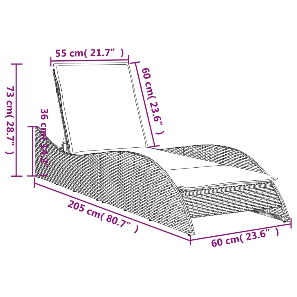 Entspanne dich und genieße deinen Außenbereich auf dieser bequemen Sonnenliege! Langlebiges Material: PE-Rattan, auch als Poly Rattan bekannt, ist ein robustes, pflegeleichtes synthetisches Material, das die Optik von natürlichem Rattan aufweist. Es kennzeichnet sich durch ein geringes Eigengewicht und lässt sich einfach reinigen. Aufgrund seiner Haltbarkeit und Witterungsbeständigkeit wird es häufig bei der Herstellung von Gartenmöbeln verwendet. Verstellbare Rückenlehne: Dieses Möbelstück verfügt über eine 3-fach verstellbare Rückenlehne, um stets die bequemste Position zum Entspannen zu finden. Bequemes Sitzerlebnis: Dieser Gartensessel mit dick gepolsterten Kissen bietet ein angenehmes Sitzgefühl. Abnehmbarer und waschbarer Bezug: Das Sitzkissen verfügt über einen abnehmbaren Bezug, der sich ganz einfach waschen und pflegen lässt. Robuster und stabiler Rahmen: Dank des pulverbeschichteten Stahlrahmens ist das Möbelstück robust, stabil und für den täglichen Einsatz im Außenbereich geeignet. Gut zu wissen: Wir empfehlen dir, deine Gartenmöbel mit einer wasserdichten Hülle zu schützen, um lange Zeit eine ansprechende Optik aufzuweisen.