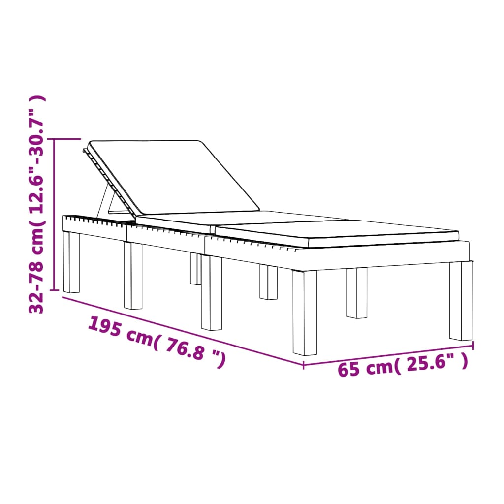- Abmessungen des Sonnenliegenkissens: 195 x 65 x 4 cm (L x B x T)
