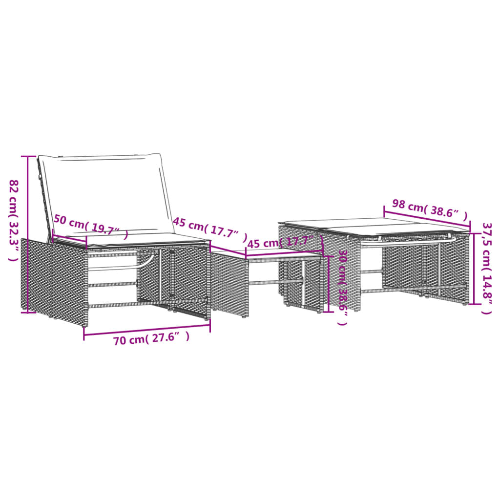 Entspanne dich und genieße deinen Außenbereich auf diesen bequemen Sonnenliegen! Langlebiges Material: PE-Rattan, auch als Poly Rattan bekannt, ist ein robustes, pflegeleichtes synthetisches Material, das die Optik von natürlichem Rattan aufweist. Es kennzeichnet sich durch ein geringes Eigengewicht und lässt sich einfach reinigen. Aufgrund seiner Haltbarkeit und Witterungsbeständigkeit wird es häufig bei der Herstellung von Gartenmöbeln verwendet. Verstellbare Rückenlehne: Dieses Möbelstück verfügt über eine 4-fach verstellbare Rückenlehne, um stets ganz einfach die bequemste und geeignetste Position zum Entspannen zu finden. Tischplatte aus Glas: Die Tischplatte des Gartentisches besteht aus starkem und langlebigem Hartglas, sodass sie leicht mit einem feuchten Tuch gereinigt werden kann und deinem Außenbereich einen Hauch von Eleganz verleiht. Bequemes Sitzerlebnis: Dieser Gartensessel mit dick gepolsterten Kissen bietet ein angenehmes Sitzgefühl. Abnehmbarer und waschbarer Bezug: Das Sitzkissen verfügt über einen abnehmbaren Bezug, der sich ganz einfach waschen und pflegen lässt. Gut zu wissen:Wir empfehlen dir, deine Gartenmöbel mit einer wasserdichten Hülle zu schützen, um lange Zeit eine ansprechende Optik aufzuweisen.