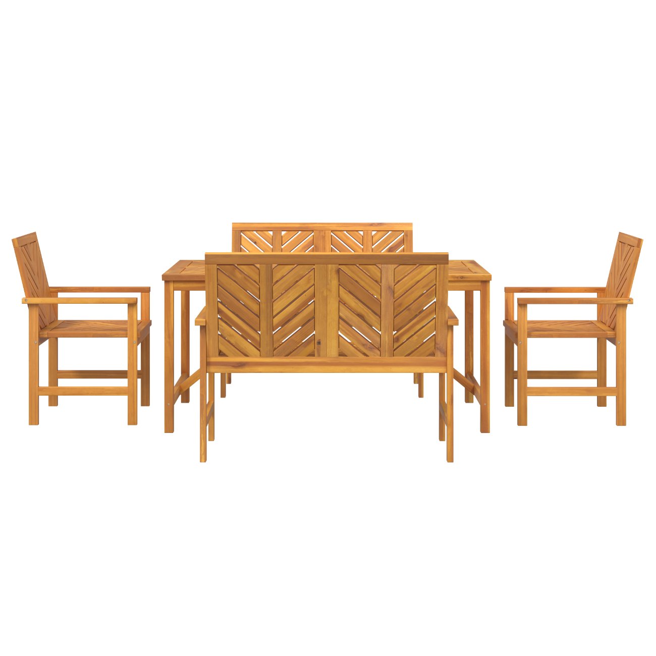 Dieses Garten Essset ist ein cleverer Mix aus Funktionalität und Stil, perfekt für deinen Außenbereich. Hergestellt aus massivem Akazienholz in einem natürlichen Braunton, bietet das Set einen rechteckigen Tisch, zwei Bänke und zwei stylische Stühle, sodass du einen robusten und eleganten Platz zum Essen oder Entspannen hast. Haltbares Material: Hergestellt aus massivem Akazienholz, ist dieses Set robust genug für draußen. Stylishes Design: Moderner Look mit ergonomischem Komfort – perfekt für jeden Garten oder Terrasse. Komfortable Sitzgelegenheiten: Bietet Platz für 6 Erwachsene, sehr gemütlich. Lackiertes Finish: Die glatte Oberfläche sieht toll aus und ist einfach zu reinigen, damit dein Outdoor-Essen noch besser wird. Vielseitige Funktionen: Ideal für Grillabende, Gartenpartys oder einfach zum Relaxen beim Essen im Freien.