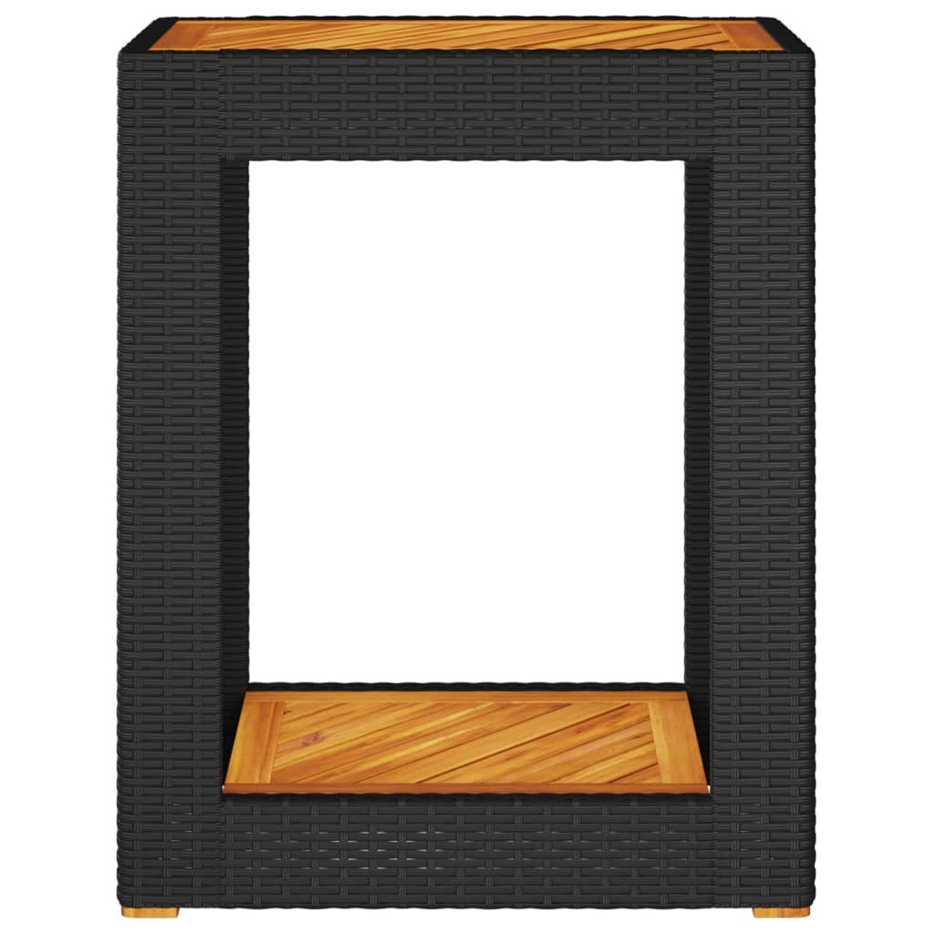 An diesem vielseitigen Gartentisch kannst du deinen Kaffee genießen oder mit Familie oder Freunden im Garten, Hinterhof bzw. auf der Terrasse plaudern! Langlebiges Material: PE-Rattan, auch als Poly Rattan bekannt, ist ein robustes, pflegeleichtes synthetisches Material, das die Optik von natürlichem Rattan aufweist. Es kennzeichnet sich durch ein geringes Eigengewicht und lässt sich einfach reinigen. Aufgrund seiner Haltbarkeit und Witterungsbeständigkeit wird es häufig bei der Herstellung von Gartenmöbeln verwendet.Stabile und pflegeleichte Tischplatte: Dieser Gartentisch besitzt eine Tischplatte aus Akazienholz, die robust und langlebig ist und sich leicht mit einem feuchten Tuch reinigen lässt.Robuster und stabiler Rahmen: Dank des pulverbeschichteten Stahlrahmens ist das Möbelstück robust, stabil und für den täglichen Einsatz im Außenbereich geeignet. Gut zu wissen:Wir empfehlen dir, deine Gartenmöbel mit einer wasserdichten Hülle zu schützen, um lange Zeit eine ansprechende Optik aufzuweisen.