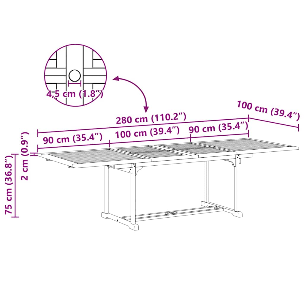 - Gesamtabmessungen: 280 x 100 x 75 cm (B x L x H)