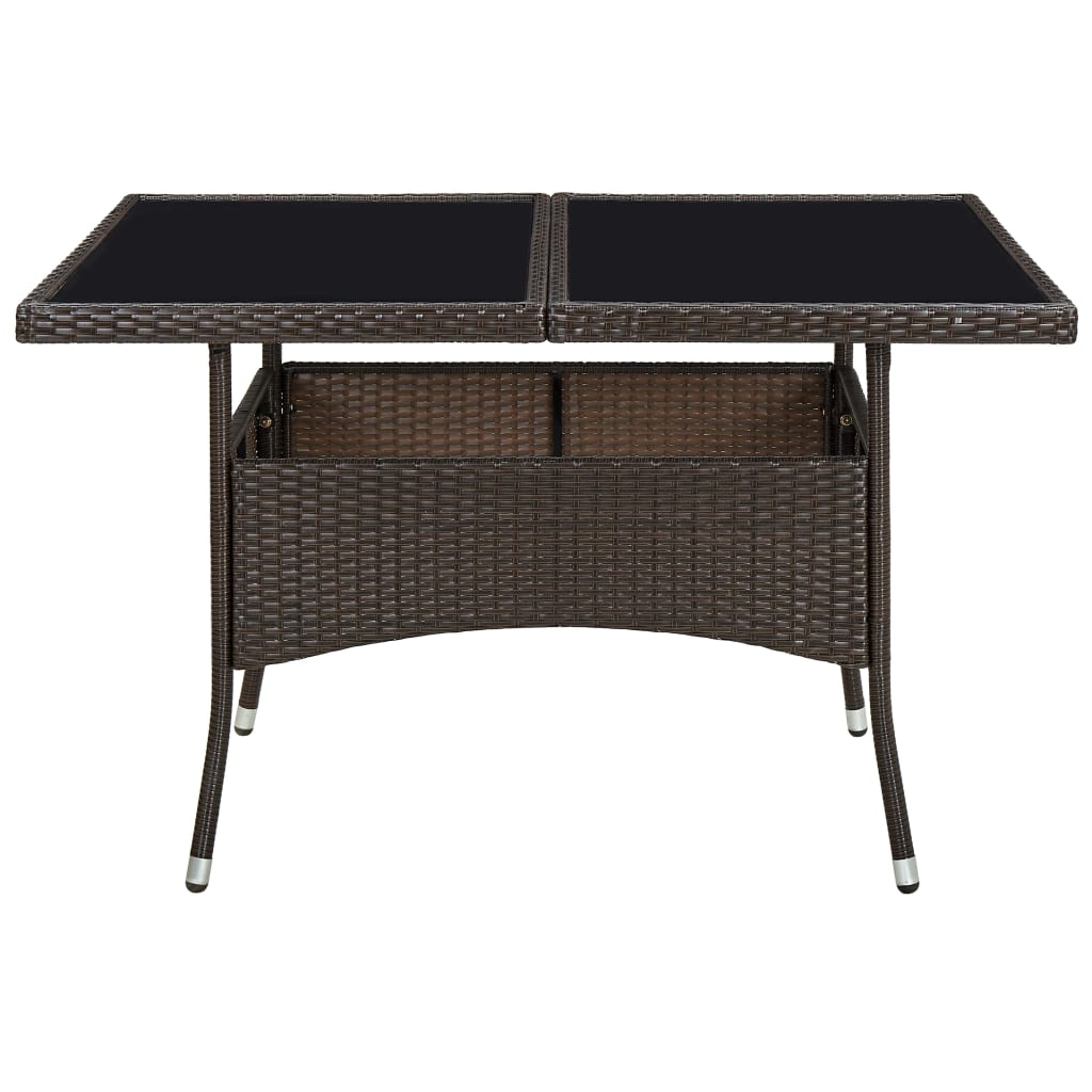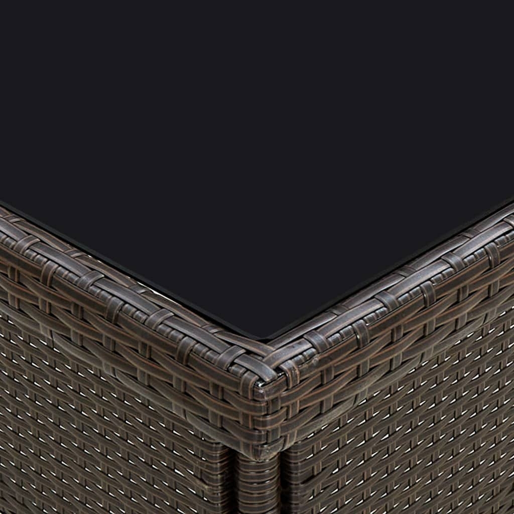 Werten Sie Ihren Garten oder Ihre Veranda mit diesem auffälligen Garten-Esstisch auf. Er erfüllt mühelos die Bedürfnisse Ihrer Gäste und bietet gleichzeitig den perfekten Platz für ein Abendessen im Freien! Sie können an diesem Esstisch unvergessliche Mahlzeiten unter freiem Himmel oder ein sonniges Mittagessen auf der Terrasse genießen. Der Rattantisch bietet Platz für bis zu 4 Personen. Ausgestattet mit einem pulverbeschichteten Stahlrahmen, der mit UV- und witterungsbeständigem PE-Rattan umwickelt ist, gewährleistet dieser Tisch einen jahrelangen Außeneinsatz. Hergestellt aus gehärtetem Glas, ist die Tischplatte pflegeleicht und einfach zu reinigen. Darüber hinaus ermöglicht die leichte Konstruktion aus Poly-Rattan die einfache Umstellung dieses Tisches. Wichtiger Hinweis: Wir empfehlen, den Tisch bei Regen, Schnee, Frost oder anderen rauen Wetterbedingungen abzudecken, um seine Lebensdauer zu verlängern.