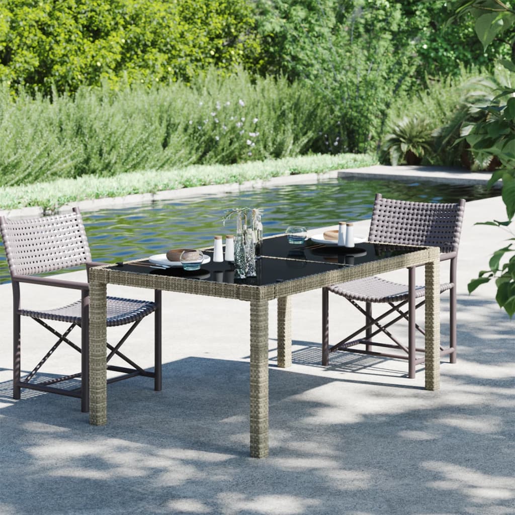 Dieser Gartentisch aus Poly Rattan kombiniert Stil und Funktionalität und wird mit Sicherheit das Herzstück Ihres Gartens, Ihrer Terrasse oder jedes anderen Outdoor-Wohnraums sein. Ausgestattet mit einem pulverbeschichteten Stahlgestell, das mit Poly Rattan umwickelt ist, ist der Gartentisch robust und stabil. Zudem besteht die Tischplatte aus gehärtetem Glas, wodurch sie leicht zu reinigen ist. Dank der Leichtbauweise lässt sich der Outdoor-Tisch leicht umstellen. Hinweis: Um die Lebensdauer Ihrer Gartenmöbel zu verlängern, empfehlen wir Ihnen, diese regelmäßig zu reinigen und im Freien vor Niederschlägen oder starken Sonnenstrahlen zu schützen.Reinigung: Verwenden Sie eine milde SeifenlösungLagerung: Wenn möglich, an einem kühlen, trockenen Ort im Innenbereich lagern. Wenn das Produkt im Freien gelagert wird, schützen Sie es mit einer wasserdichten Abdeckung. Wischen und trocknen Sie das überschüssige Wasser oder den Schnee nach Regen oder Schneefall von ebenen Flächen. Sorgen Sie für eine ausreichende Luftzirkulation, um feuchtigkeitsbedingte Schäden zu vermeiden.