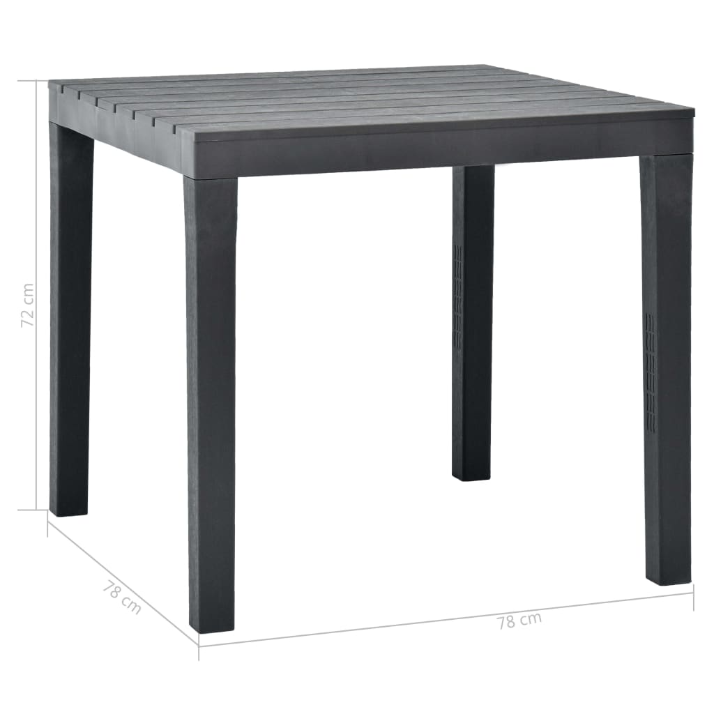 Dieser Garten-Esstisch ist eine ausgezeichnete Wahl für Mahlzeiten im Garten, auf der Terrasse oder auf dem Campingplatz. Der Tisch besteht aus robustem Kunststoff und ist daher witterungsbeständig. Er lässt sich auch einfach reinigen. Die Tischplatte mit Latten-Design verleiht ihm Eleganz. Darüber hinaus lässt er sich dank des geringen Eigengewichts mühelos umstellen.