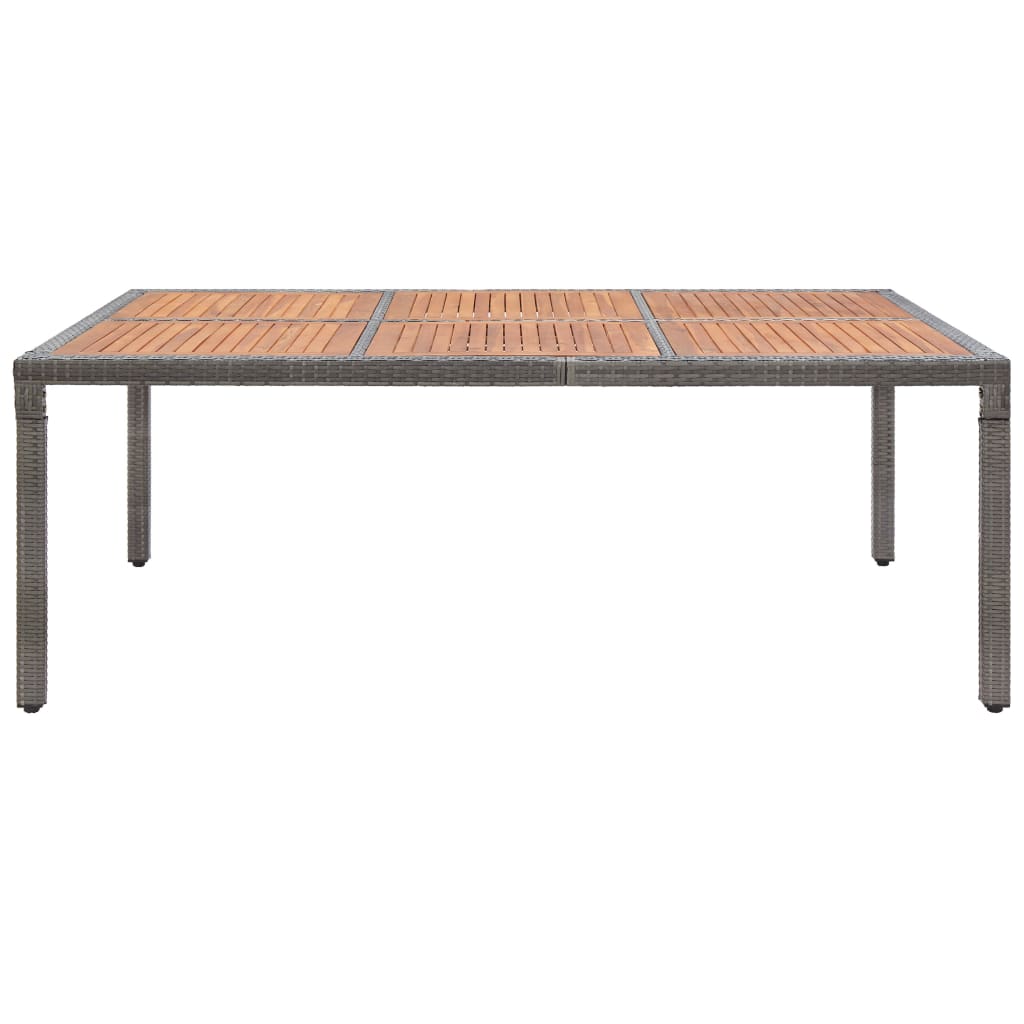 Unser Gartentisch in Rattan-Optik ist eine großartige Bereicherung für deinen Außenbereich. Mit seinem schlichten und modernen Design verleiht er deiner Terrasse, deinem Balkon oder Garten einen Hauch Eleganz. Aus witterungsbeständigem und wasserfestem PE-Rattan gefertigt, lässt sich der Gartentisch leicht reinigen, ist strapazierfähig und für den täglichen Gebrauch geeignet. Das pulverbeschichtete Stahlgestell verleiht ihm Robustheit und Haltbarkeit. Dank der Leichtbauweise lässt sich der Esstisch einfach umstellen. Die Tischplatte besteht aus massivem Akazienholz, das mit natürlichem Öl behandelt wurde. Akazienholz ist ein tropisches Hartholz, das witterungsbeständig und sehr langlebig ist. Hinweis: Wir empfehlen, den Tisch bei Regen, Schnee und Frost abzudecken.