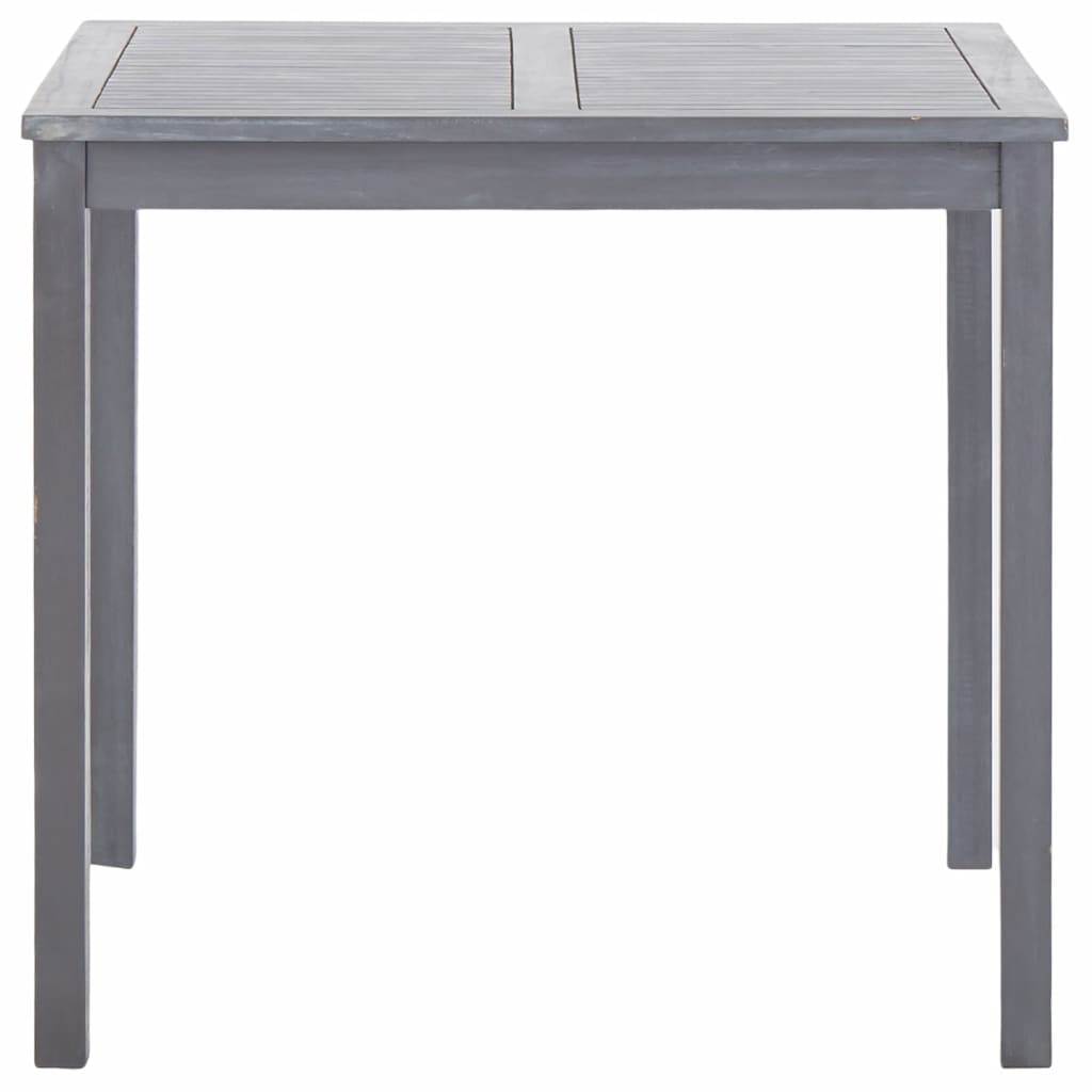Dieser quadratische Esstisch aus Holz strahlt einen rustikalen Charme aus und ist eine tolle Ergänzung zu deinem Außenbereich. Der Esstisch besteht aus massivem Akazienholz, einem tropischen Hartholz, das witterungsbeständig und sehr haltbar ist. Durch die geschliffene Oberfläche in Grau lässt sich der Tisch leicht mit einem feuchten Tuch reinigen. Der Tisch ist einfach aufzubauen.