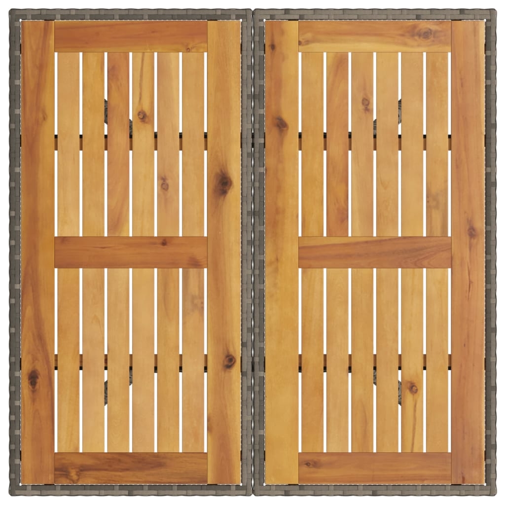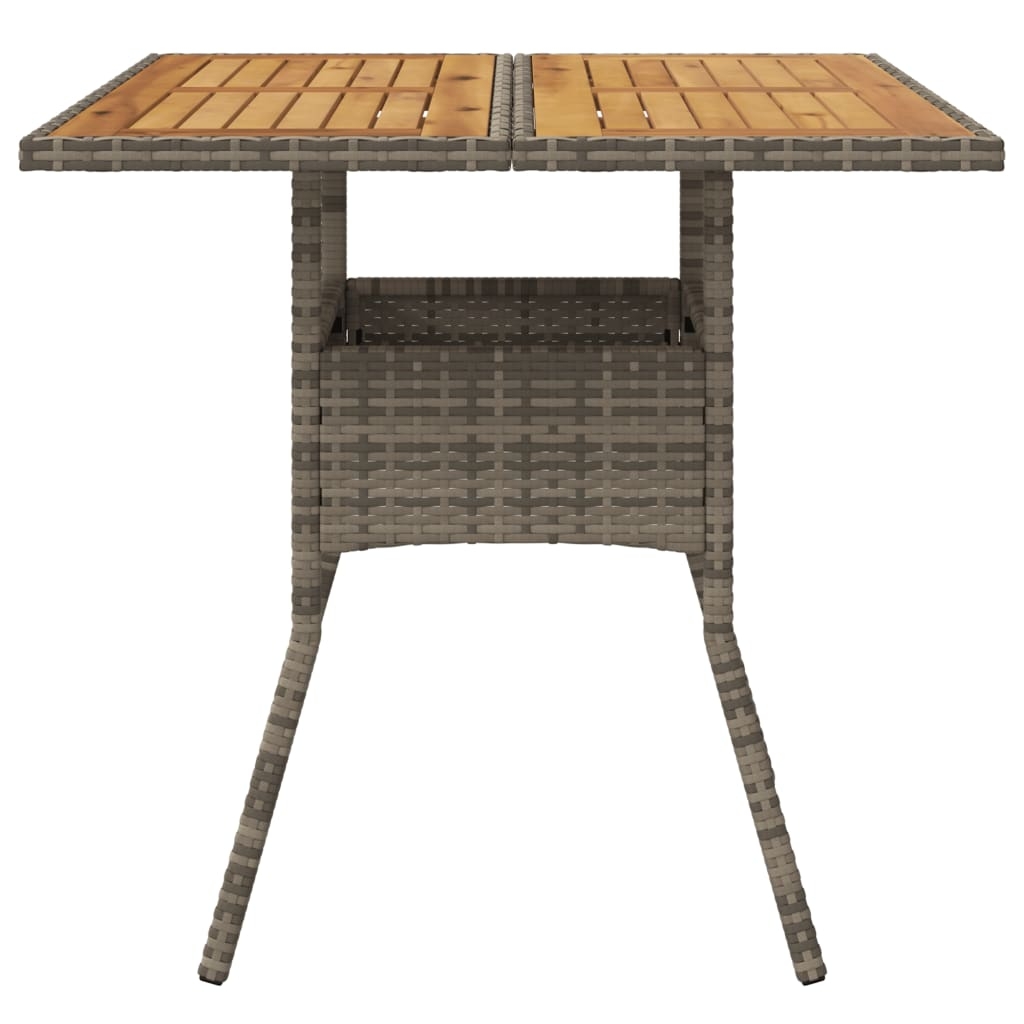 Mit seinen klaren Linien und seinem schlichten Design ist dieser Gartentisch mit Holzplatte eine ausgezeichnete Wahl für deinen Garten, deine Terrasse und andere Außenbereiche. Langlebiges Material: PE-Rattan, auch als Poly Rattan bekannt, ist ein robustes, pflegeleichtes synthetisches Material, das die Optik von natürlichem Rattan aufweist. Es kennzeichnet sich durch ein geringes Eigengewicht und lässt sich einfach reinigen. Aufgrund seiner Haltbarkeit und Witterungsbeständigkeit wird es häufig bei der Herstellung von Gartenmöbeln verwendet.Stabile und pflegeleichte Tischplatte: Dieser Gartentisch besitzt eine Tischplatte aus Akazienholz, die robust und langlebig ist und sich leicht mit einem feuchten Tuch reinigen lässt.Robuster und stabiler Rahmen: Dank des pulverbeschichteten Stahlrahmens ist das Möbelstück robust, stabil und für den täglichen Einsatz im Außenbereich geeignet. Gut zu wissen:Wir empfehlen dir, deine Gartenmöbel mit einer wasserdichten Hülle zu schützen, um lange Zeit eine ansprechende Optik aufzuweisen.