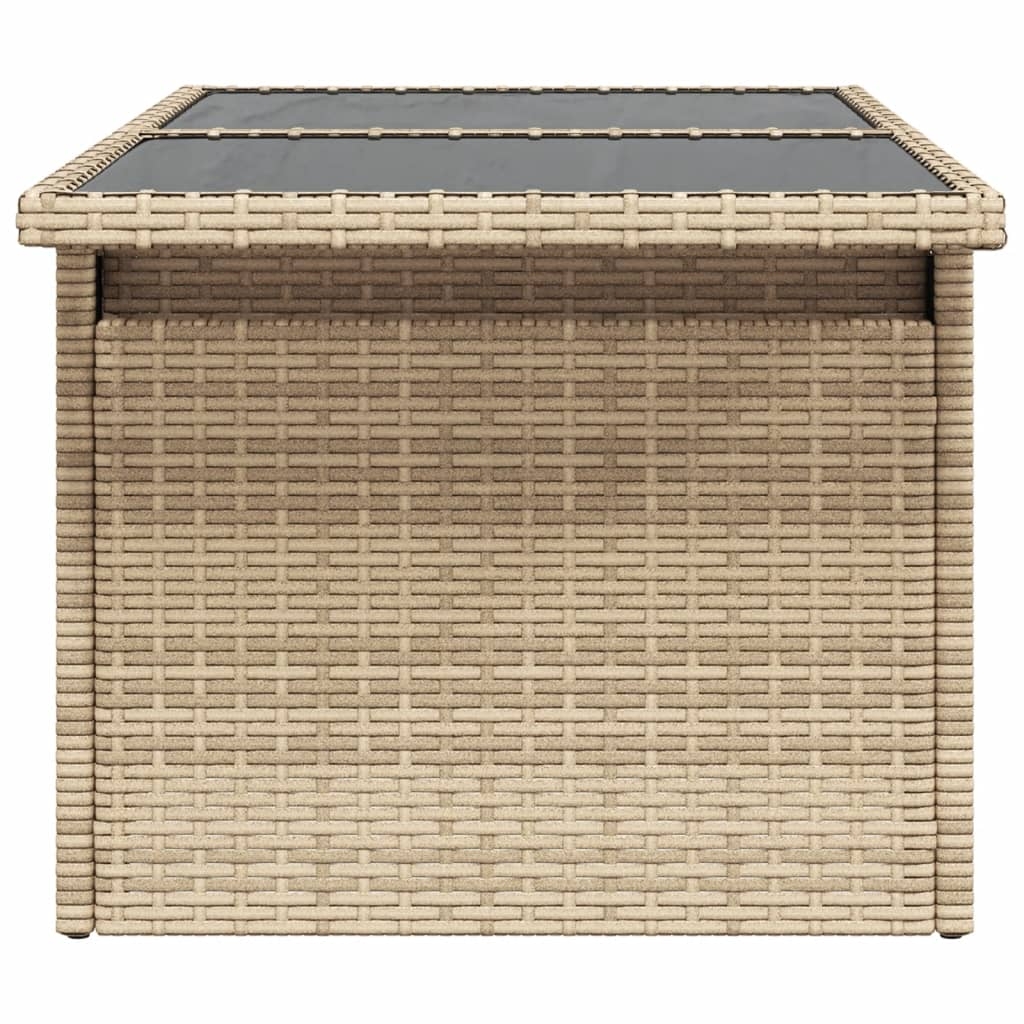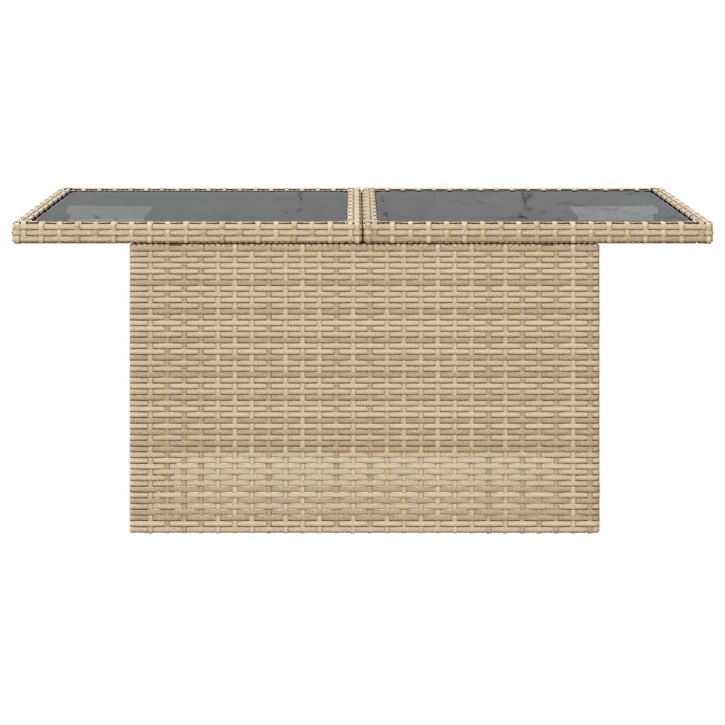 An diesem vielseitigen Gartentisch kannst du eine Tasse Kaffee genießen oder mit Familie oder Freunden im Garten, Hinterhof bzw. auf der Terrasse plaudern! Langlebiges Material: PE-Rattan, auch als Poly Rattan bekannt, ist ein robustes, pflegeleichtes synthetisches Material, das die Optik von natürlichem Rattan aufweist. Es kennzeichnet sich durch ein geringes Eigengewicht und lässt sich einfach reinigen. Aufgrund seiner Haltbarkeit und Witterungsbeständigkeit wird es häufig bei der Herstellung von Gartenmöbeln verwendet.Verstellbare Tischplatte: Die Tischplatte lässt sich anheben, um den Gartentisch höher zu machen und ihn von einem Couchtisch in einen Esstisch zu verwandeln. Der Tisch eignet sich daher perfekt für Gäste oder Mahlzeiten im Freien.Tischplatte aus Glas: Die Tischplatte des Gartentisches besteht aus starkem und langlebigem Hartglas, sodass sie leicht mit einem feuchten Tuch gereinigt werden kann und deinem Außenbereich einen Hauch von Eleganz verleiht.Robuster und stabiler Rahmen: Dank des pulverbeschichteten Stahlrahmens ist das Möbelstück robust, stabil und für den täglichen Einsatz im Außenbereich geeignet. Gut zu wissen:Wir empfehlen dir, deine Gartenmöbel mit einer wasserdichten Hülle zu schützen, um lange Zeit eine ansprechende Optik aufzuweisen.