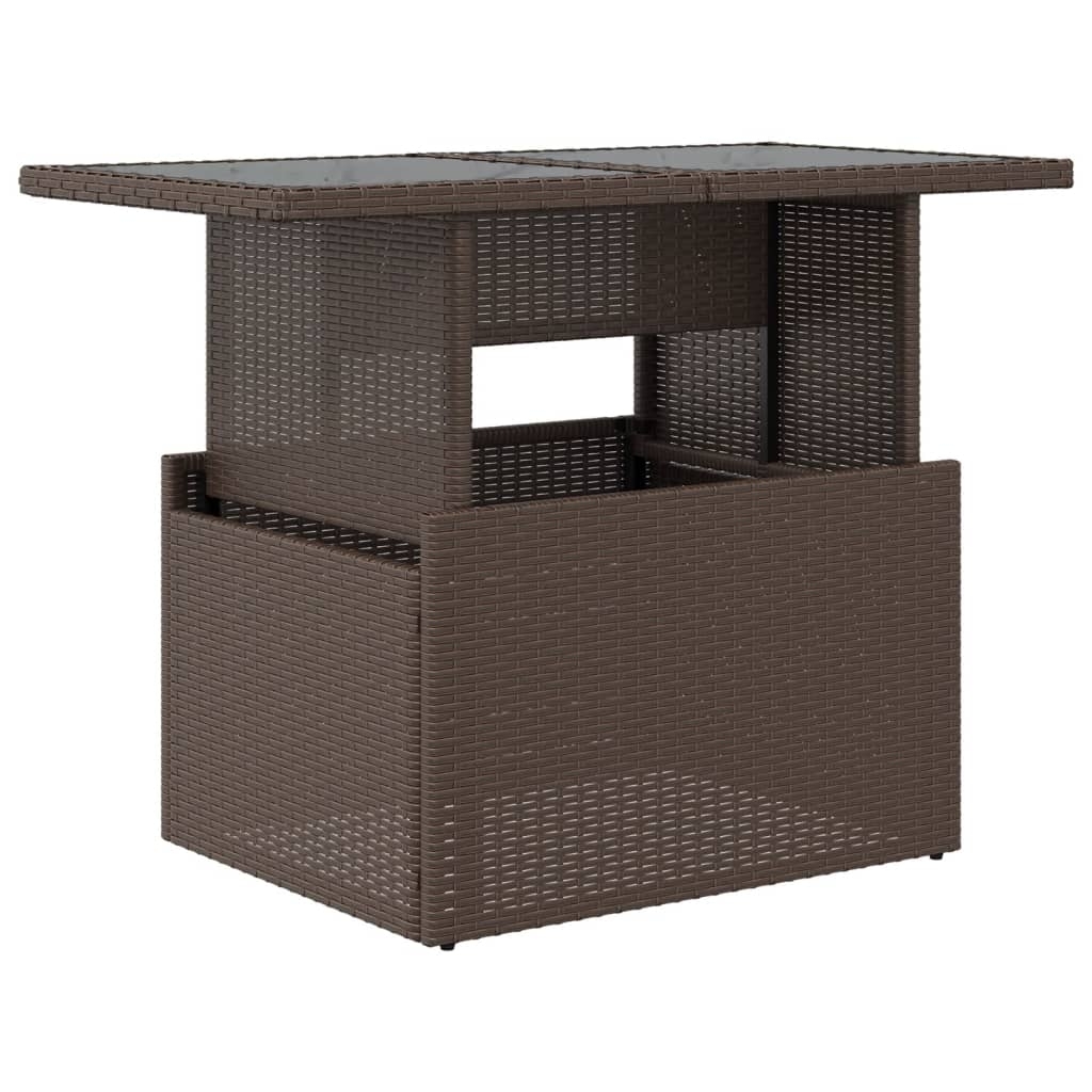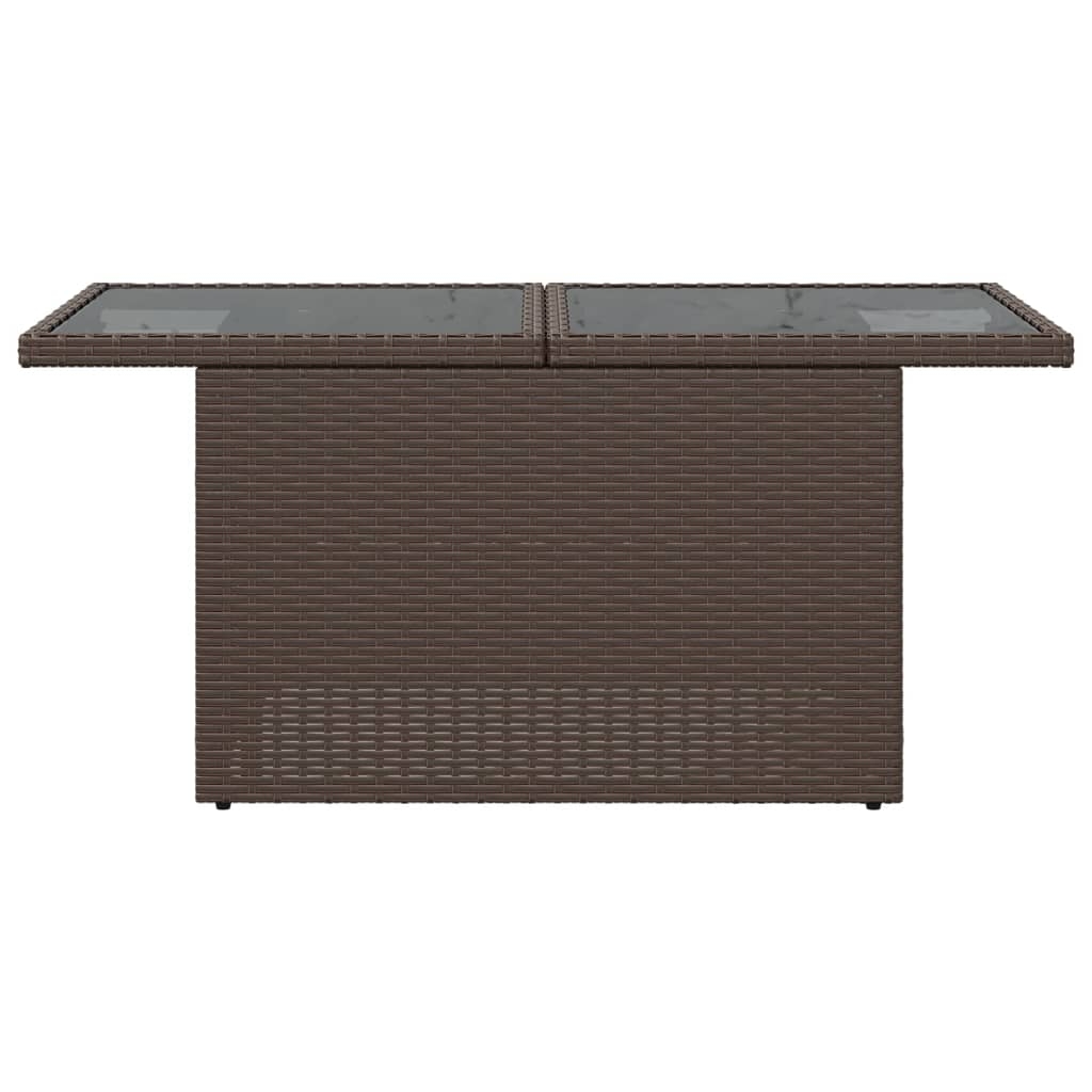 An diesem vielseitigen Gartentisch kannst du eine Tasse Kaffee genießen oder mit Familie oder Freunden im Garten, Hinterhof bzw. auf der Terrasse plaudern! Langlebiges Material: PE-Rattan, auch als Poly Rattan bekannt, ist ein robustes, pflegeleichtes synthetisches Material, das die Optik von natürlichem Rattan aufweist. Es kennzeichnet sich durch ein geringes Eigengewicht und lässt sich einfach reinigen. Aufgrund seiner Haltbarkeit und Witterungsbeständigkeit wird es häufig bei der Herstellung von Gartenmöbeln verwendet.Verstellbare Tischplatte: Die Tischplatte lässt sich anheben, um den Gartentisch höher zu machen und ihn von einem Couchtisch in einen Esstisch zu verwandeln. Der Tisch eignet sich daher perfekt für Gäste oder Mahlzeiten im Freien.Tischplatte aus Glas: Die Tischplatte des Gartentisches besteht aus starkem und langlebigem Hartglas, sodass sie leicht mit einem feuchten Tuch gereinigt werden kann und deinem Außenbereich einen Hauch von Eleganz verleiht.Robuster und stabiler Rahmen: Dank des pulverbeschichteten Stahlrahmens ist das Möbelstück robust, stabil und für den täglichen Einsatz im Außenbereich geeignet. Gut zu wissen:Wir empfehlen dir, deine Gartenmöbel mit einer wasserdichten Hülle zu schützen, um lange Zeit eine ansprechende Optik aufzuweisen.