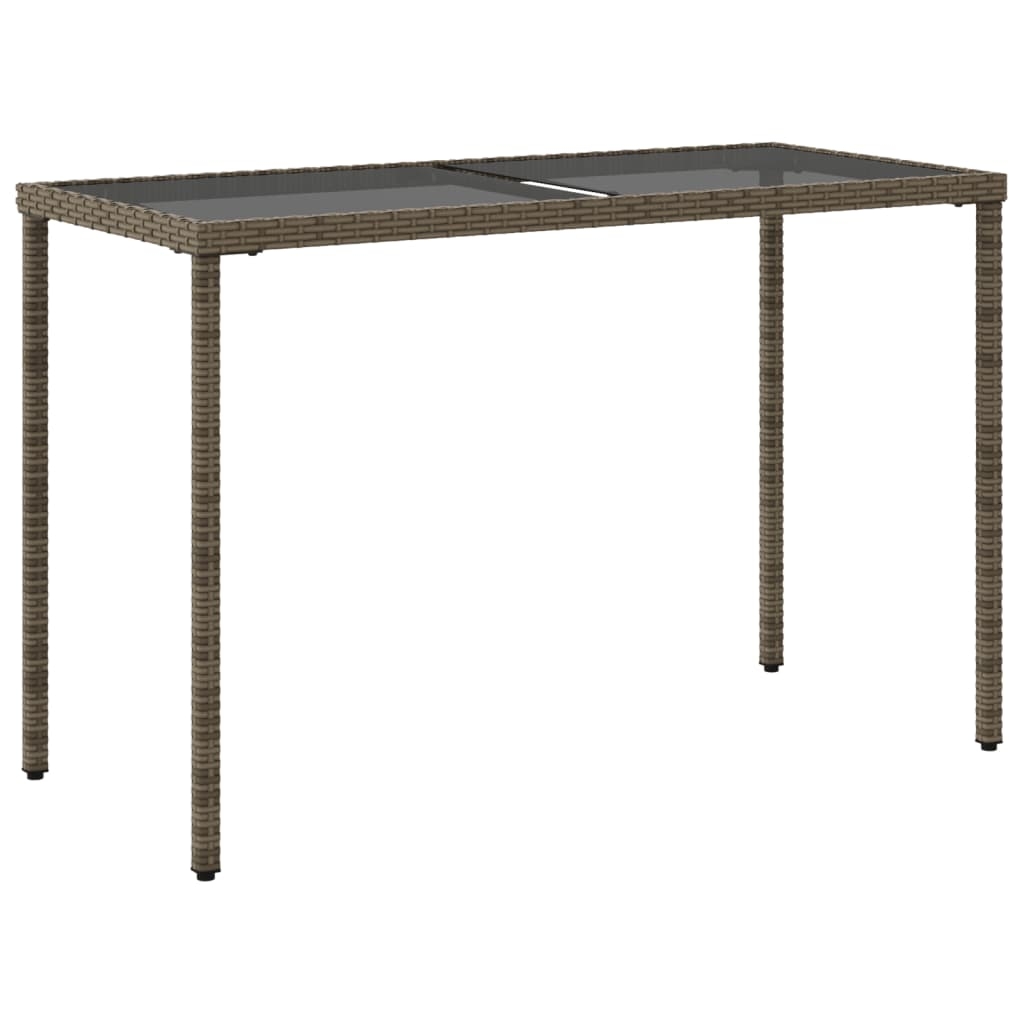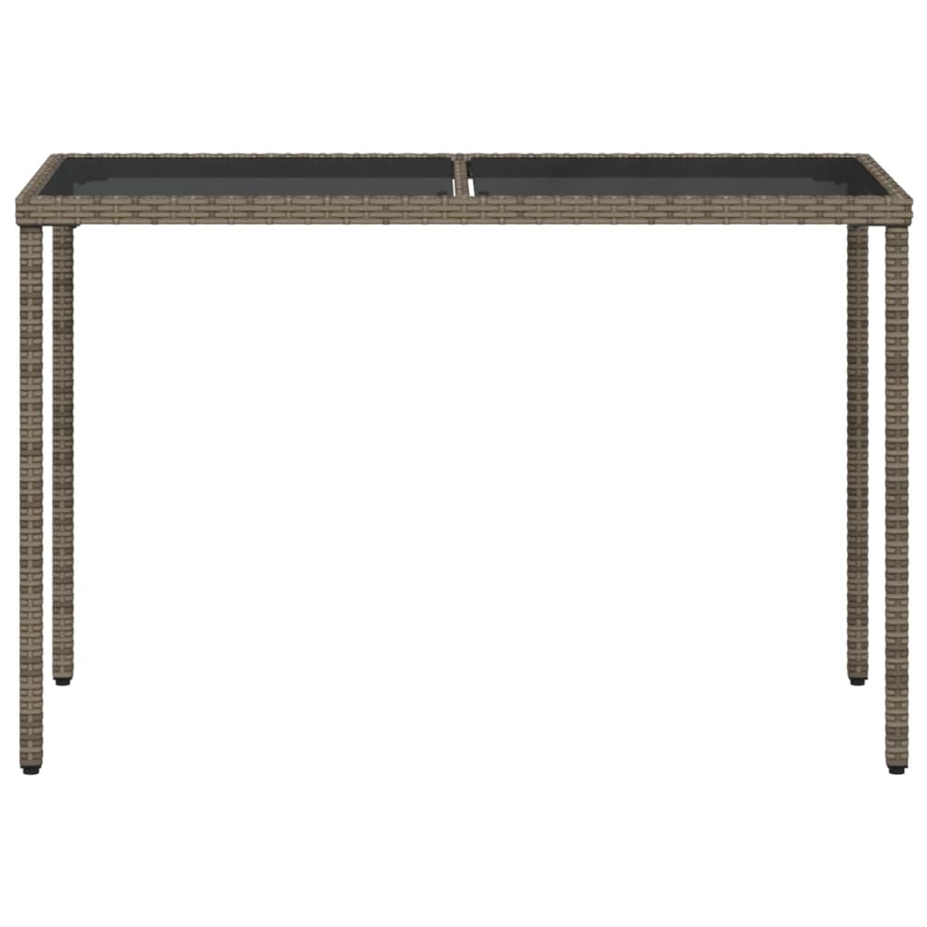 Mit seinen klaren Linien und seinem schlichten Design ist dieser Gartentisch mit Glasplatte eine ausgezeichnete Wahl für deinen Garten, deine Terrasse und andere Außenbereiche. Langlebiges Material: PE-Rattan, auch als Poly Rattan bekannt, ist ein robustes, pflegeleichtes synthetisches Material, das die Optik von natürlichem Rattan aufweist. Es kennzeichnet sich durch ein geringes Eigengewicht und lässt sich einfach reinigen. Aufgrund seiner Haltbarkeit und Witterungsbeständigkeit wird es häufig bei der Herstellung von Gartenmöbeln verwendet.Tischplatte aus Glas: Die Tischplatte des Gartentisches besteht aus starkem und langlebigem Hartglas, sodass sie leicht mit einem feuchten Tuch gereinigt werden kann und deinem Außenbereich einen Hauch von Eleganz verleiht.Robuster und stabiler Rahmen: Dank des pulverbeschichteten Stahlrahmens ist das Möbelstück robust, stabil und für den täglichen Einsatz im Außenbereich geeignet. Gut zu wissen:Wir empfehlen dir, deine Gartenmöbel mit einer wasserdichten Hülle zu schützen, um lange Zeit eine ansprechende Optik aufzuweisen.