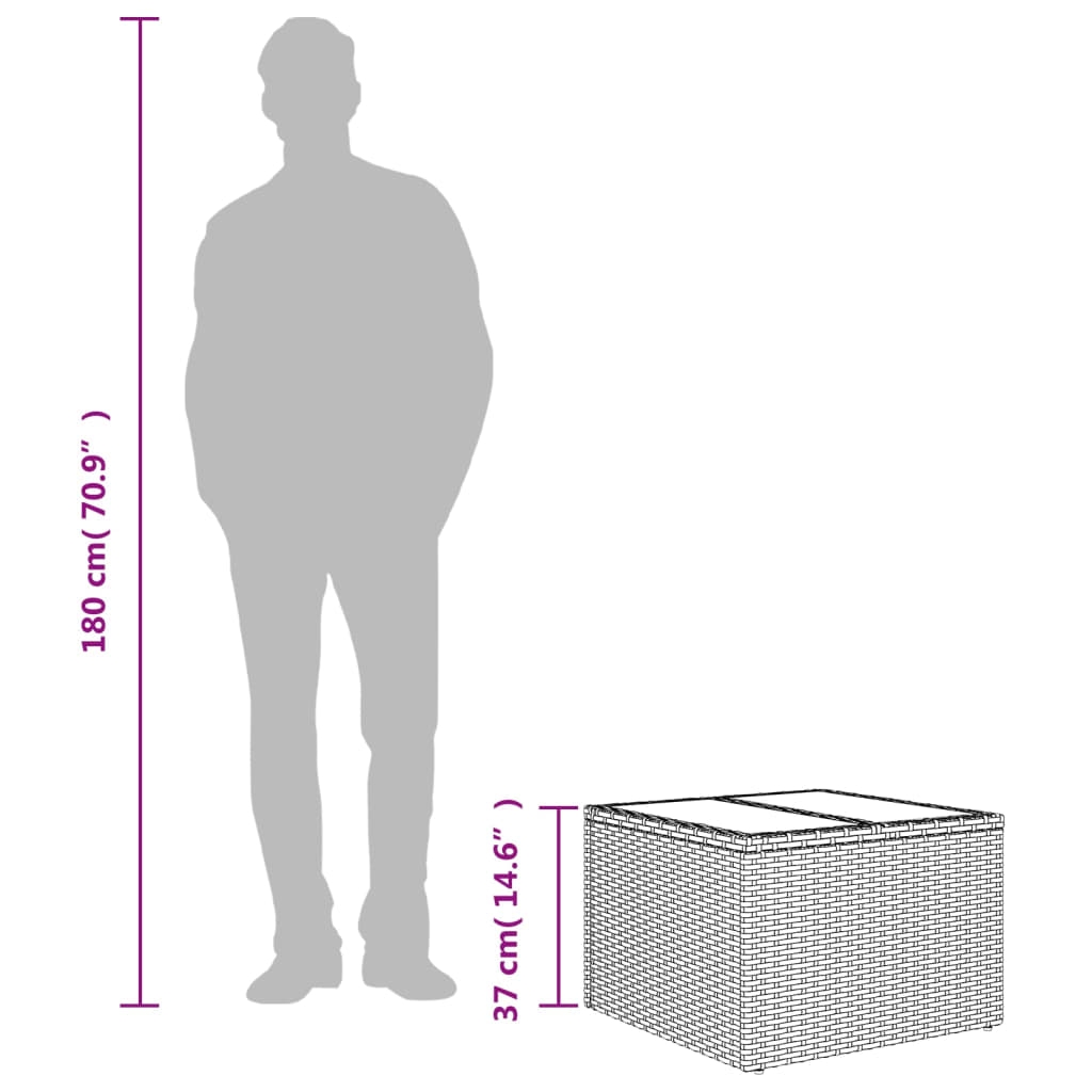 An diesem Gartentisch kannst du eine Tasse Kaffee genießen oder mit Familie oder Freunden im Garten, Hinterhof bzw. auf der Terrasse plaudern! Langlebiges Material: PE-Rattan, auch als Poly Rattan bekannt, ist ein robustes, pflegeleichtes synthetisches Material, das die Optik von natürlichem Rattan aufweist. Es kennzeichnet sich durch ein geringes Eigengewicht und lässt sich einfach reinigen. Aufgrund seiner Haltbarkeit und Witterungsbeständigkeit wird es häufig bei der Herstellung von Gartenmöbeln verwendet.Tischplatte aus Glas: Die Tischplatte des Gartentisches besteht aus starkem und langlebigem Hartglas, sodass sie leicht mit einem feuchten Tuch gereinigt werden kann und deinem Außenbereich einen Hauch von Eleganz verleiht.Robuster und stabiler Rahmen: Dank des pulverbeschichteten Stahlrahmens ist das Möbelstück robust, stabil und für den täglichen Einsatz im Außenbereich geeignet. Gut zu wissen:Wir empfehlen dir, deine Gartenmöbel mit einer wasserdichten Hülle zu schützen, um lange Zeit eine ansprechende Optik aufzuweisen.