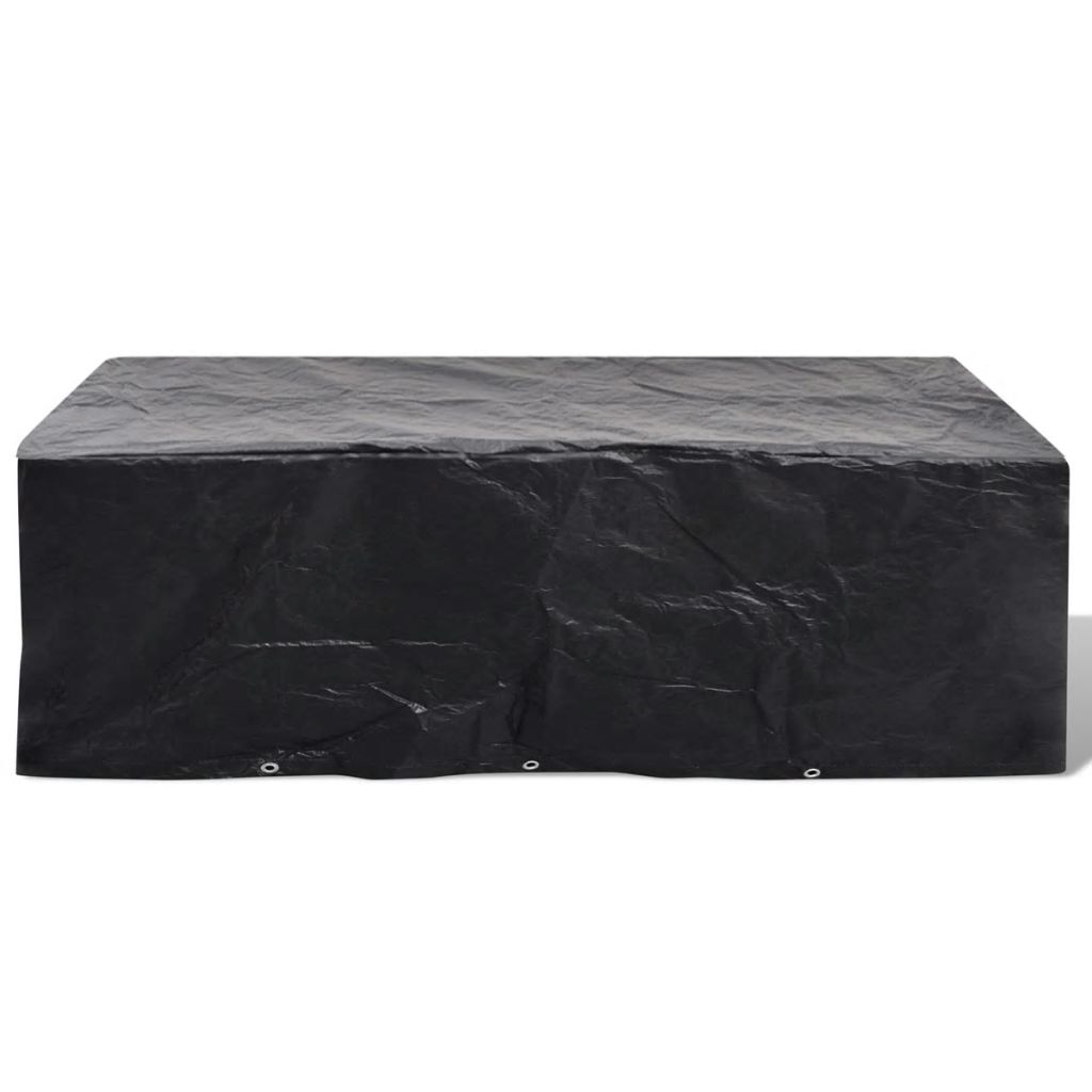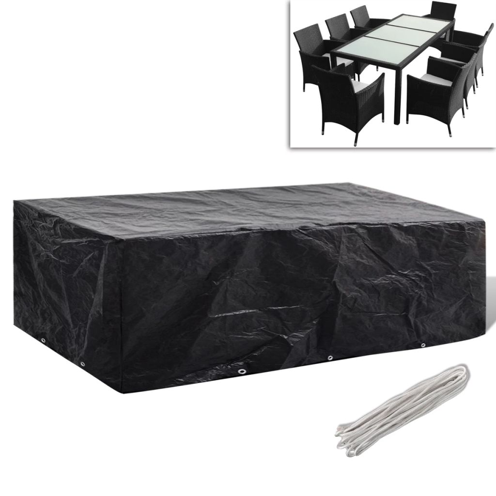 Diese hochwertige Gartenmöbel-Abdeckplane schützt deine Rattan-Gartenmöbel das ganze Jahr über vor Verschmutzungen, Wind, Regen und UV-Strahlung. Die Abdeckplane besteht aus strapazierfähigem Polyethylen, das wasserfest, UV-beständig, reißfest und damit für den täglichen Gebrauch geeignet ist. Die Plane ist mit 10 Aluminiumösen und einem Befestigungsseil ausgestattet und lässt sich daher fest befestigen. Die Hülle ist für unser 8-Personen-Möbel-Set (SKU 40894 / 40895 / 41277) geeignet. Du kannst diese Abdeckung auch für andere Gartenmöbel-Sets verwenden, solange sie von der Größe her passt. Hinweis: Dieses Produkt ist nicht 100 % wasserdicht. Wir empfehlen daher, es mit einem Imprägnierspray zu behandeln.