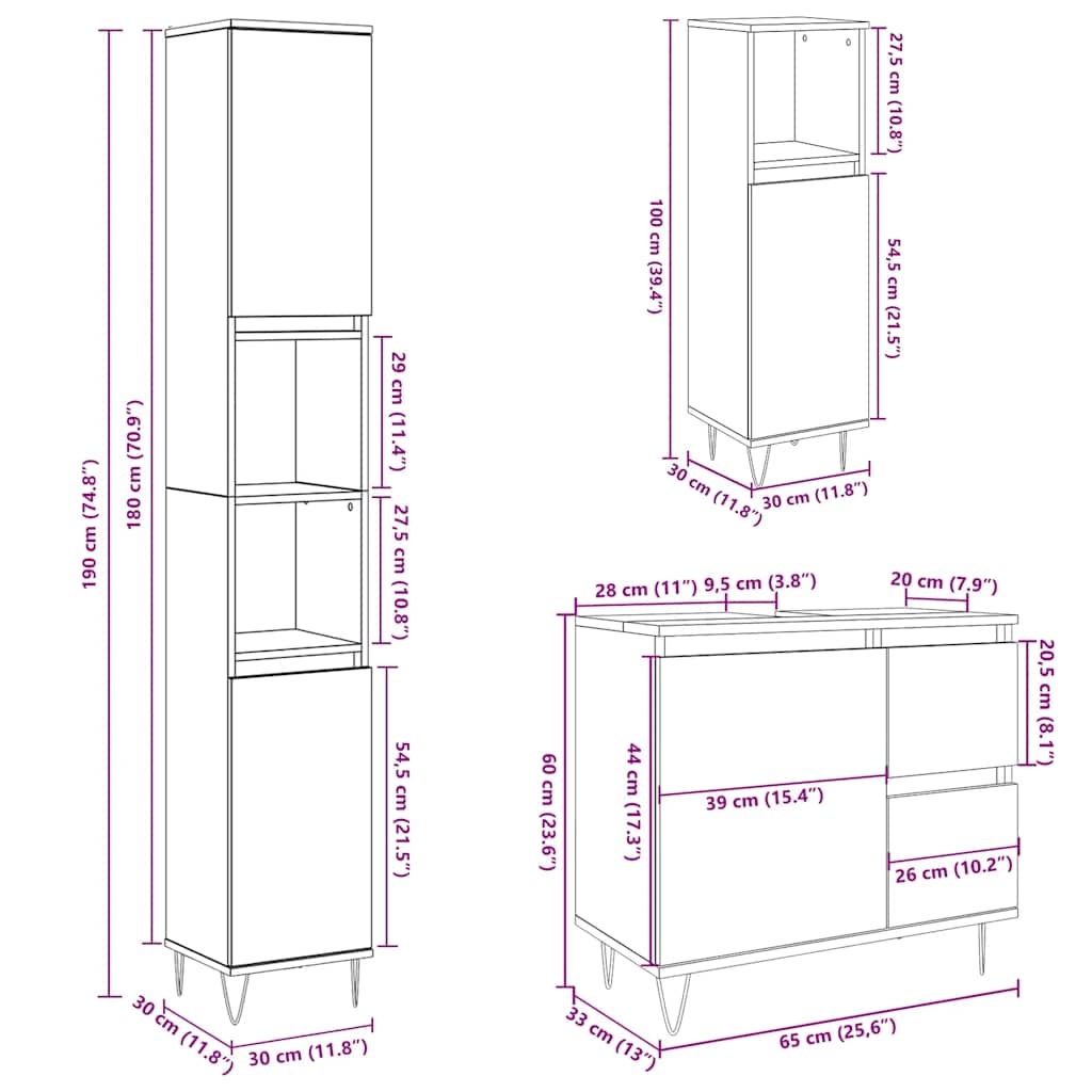 - Abmessungen des Badschranks (L): 30 x 30 x 190 cm (B x T x H)