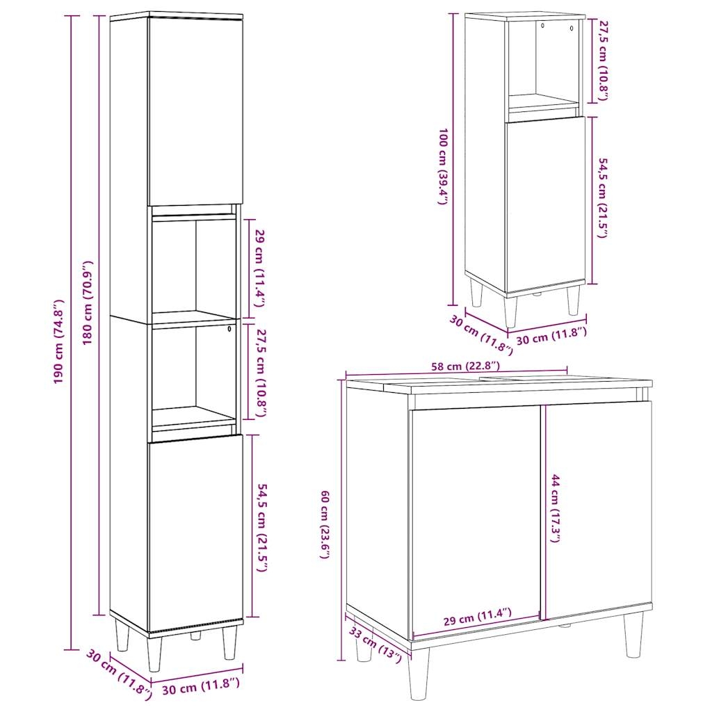 - Abmessungen des Badschranks (S): 30 x 30 x 100 cm (B x T x H)