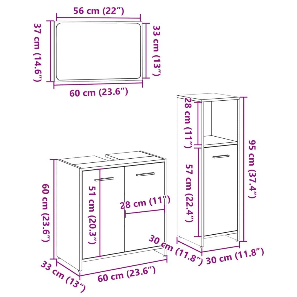 Dieses Badmöbel-Set ist eine hervorragende Ergänzung für dein Badezimmer. Es verleiht ihm ein aufgeräumtes und eindrucksvolles Aussehen! Langlebiges Material: Holzwerkstoff ist ein Material außergewöhnlicher Qualität mit glatter Oberfläche. Er zeichnet sich durch Festigkeit, Stabilität und Feuchtigkeitsbeständigkeit aus.Reichlich Stauraum: Der Hochschrank bietet reichlich Platz, um wichtigste Toilettenartikel und Badutensilien wie Seife, Shampoo, Zahnpasta usw. zu verstauen.Praktische Tür: Sorge für Ordnung in deinem Badezimmer, indem du verschiedene Kleinigkeiten in diesem Seitenschrank aufbewahrst. Die Türen lassen sich je nach Bedarf links oder rechts anbringen.Praktisches Design: Dieser Bad-Unterschrank mit Spiegel ist ideal, um das Waschbecken darauf zu platzieren.Pflegeleicht: Dank seiner glatten Oberfläche lässt sich der Waschbeckenunterschrank mit einem feuchten Tuch leicht reinigen und erfordert wenig Pflege. Gut zu wissen:Schrauben und Dübel für die Montage an der Wand sind nicht enthalten. Passendes Montagezubehör muss separat gekauft werden. Wenn du dir bezüglich der Montage nicht sicher bist, wende dich bitte an einen Fachmann. Bitte lies und befolge jeden Schritt in der Anleitung.Achtung:Um ein Umkippen zu vermeiden, sollte dieses Produkt mit der mitgelieferten Wandhalterung gesichert werden.