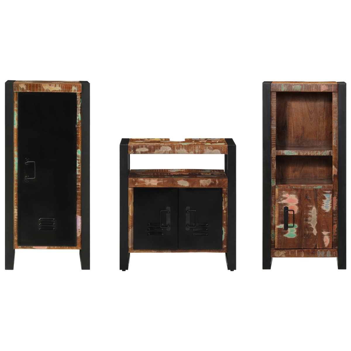 Dieses Badezimmer-Schranksystem ist eine klasse Mischung aus industriellem Look und Praktikabilität, passend für jeden modernen Raum. Es hat drei wichtige Teile: einen kleinen Hochschrank, ein mittleres Standgerät und ein stylisches wandmontiertes Stück, das dir jede Menge Stauraum für den stilbewussten Hausbesitzer gibt. Die rechteckige Form fügt sich schön in viele Innenräume ein, während die strukturierte Oberfläche einen urbanen Chic hinzufügt und dein Zimmer mit minimalem Aufwand zum Strahlen bringt. Texturierte Oberfläche: Das Schrankset hat eine texturierte Außenseite, die sich gut anfühlt und toll aussieht. Das verbessert nicht nur den Look der Schränke, sondern macht sie auch kratzfest, was die Haltbarkeit steigert und die Wartung einfach hält. Ideal für alle, die ihrem Zuhause einen modernen Twist verleihen wollen. Vier Montagepunkte: Mit vier stabilen Montagepunkten ist der wandmontierte Schrank sicher und stabil, wenn er angebracht ist. Dieses durchdachte Design erleichtert die Installation und sorgt dafür, dass deine Badutensilien sicher verstaut werden können. Es ist zuverlässig und langlebig. Stilvolles rechteckiges Design: Die ordentliche rechteckige Form jedes Schrankstücks passt super zu vielen architektonischen Stilen. Dieses Design sieht nicht nur gut aus, sondern nutzt auch den Platz optimal und lässt sich leicht in jedes Layout integrieren. Egal, ob du viel Platz oder nur eine kleine Ecke hast, diese Form maximiert die Funktionalität, ohne an Stil zu verlieren. Industrieller Stil: Inspiriert von urbanen Lofts hat dieses Schrankset einen robusten Charme mit seinen minimalistischen Linien und solidem Aufbau, was ihm ein modernes und zeitloses Gefühl verleiht – perfekt für Fans zeitgenössischen Designs. Pflegehinweise: Dieses Set in Shape zu halten ist ganz easy – wisch einfach mit einem trockenen Tuch drüber. Diese pflegeleichte Routine hält die Schränke über Jahre hinweg tiptop und sorgt dafür, dass sie auch bei regelmäßigem Gebrauch gut aussehen.