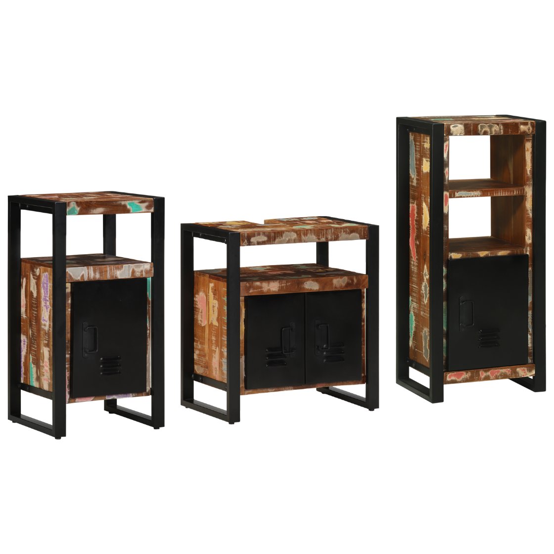 Dieses auffällige Schrankset bringt industriellen Flair in dein Zuhause und bietet sowohl gute Optik als auch praktische Funktionalität. Es ist genau das Richtige, wenn du mehr Stauraum brauchst und dabei stylisch bleiben willst – einfach super für Singles, Paare oder Familien, die flexible Lösungen suchen. Die einzigartige strukturierte Oberfläche und die rechteckige Form geben deinem Wohnraum einen modernen Touch und machen ihn praktisch und schick. Materialien: Aus robuster Bauweise, zeigt dieses Set einen industriellen Look dank seiner texturierten Eisenbeine, die eine stabile Basis für den täglichen Gebrauch bieten. Die massiven Holztüren sorgen für einen tollen Look und halten der Abnutzung stand. Inklusive Komponenten: Du bekommst zwei Badezimmer-Schränke in verschiedenen Größen plus ein wandmontiertes Stück. Jedes Teil bietet dir viel Platz, um deine Essentials ordentlich und sauber zu verstauen. Merkmale: Entworfen für Funktionalität, hat das Set wandmontierbare Teile, um Platz zu sparen. Robuste Konstruktion macht es ideal für stark frequentierte Bereiche wie Wohnzimmer oder Badezimmer. Empfohlene Verwendungen: Perfekt für verschiedene Umgebungen, passen diese Schränke super in jedes Wohnzimmer oder Badezimmer. Sie sind klasse für alle, die nach Stauraumlösungen suchen, die zu urbaner, industrieller Deko passen. Pflege & Wartung: Einfach zu pflegen – wisch sie einfach mit einem trockenen Tuch ab und meide scharfe Chemikalien, damit sie gut aussehen. Ein bisschen regelmäßige Pflege hält alles Jahre lang ordentlich und sauber.
