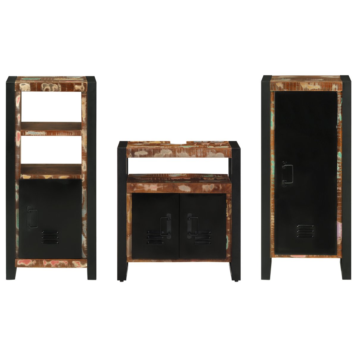 Dieses Badezimmer-Schrankset wurde entwickelt, um jedem Raum eine coole, aber robuste Ausstrahlung zu verleihen. Es kombiniert nützlichen Stauraum mit modernem Design. Das Set hat drei vielseitige Schränke, jeder mit eigenen Akzenten, die sowohl Stil als auch Funktionalität bieten. Mit stabilen Eisengestellen und strukturierten Oberflächen sind diese Schränke ideal für urbane Lofts oder zeitgenössische Häuser und bringen einen Hauch von industriellem Charme mit sich. Sie sind ein tolles Highlight, das Praktikabilität und einen Schuss Raffinesse verbindet. Materialien: Diese Schränke kombinieren stilvolles Design mit Funktionalität und passen perfekt in moderne Interieurs. Die stabilen Eisengestelle und massiven Holztüren garantieren Langlebigkeit, auch bei täglichem Gebrauch. Inklusive Komponenten: Das Set enthält zwei Stand- und einen wandmontierten Schrank, alle mit massiven Holztüren für Datenschutz und Stil. Die wandmontierte Einheit spart Platz und ist ideal für enge Räume. Funktionen / Nutzen / Design: Die Schränke bieten reichlich Stauraum, damit du deine Badezimmerutensilien effizient sortieren kannst. Ihr eleganter, industrieller Look harmoniert perfekt mit urbanem Dekor und bringt Nützlichkeit mit Stil zusammen. Empfohlene Verwendung: Super für urbane Wohnungen oder für alle, die industriellen Flair in ihren Räumen haben wollen; perfekt für Badezimmer, Wohnzimmer oder Flure. Die Flexibilität macht sie ideal für Wohnräume und sie funktionieren auch gut in gewerblichen Bereichen. Pflege & Wartung: Sind einfach zu reinigen; ein trockenes Abwischen reicht, um sie frisch aussehen zu lassen. Mit ein bisschen regelmäßiger Pflege bleiben sie lange ansprechend, ohne dass die Oberfläche leidet.