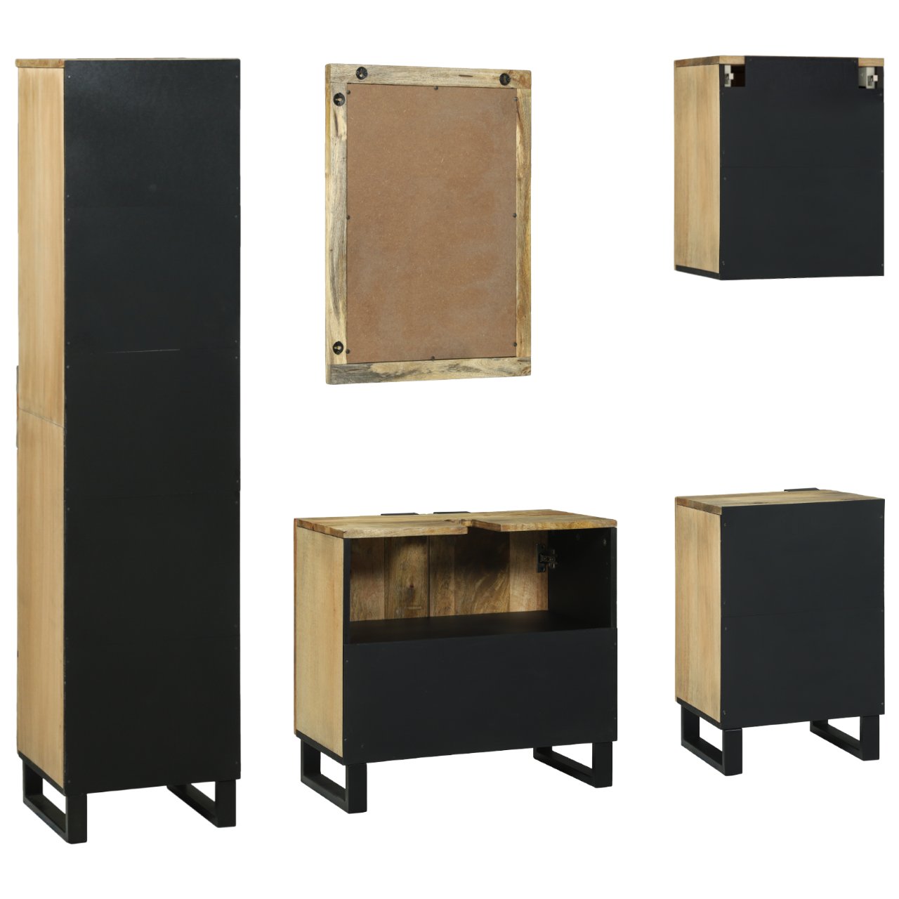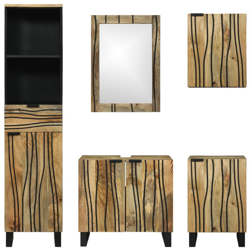 - Lieferumfang: 5 Teile inklusive Schränken und Spiegel