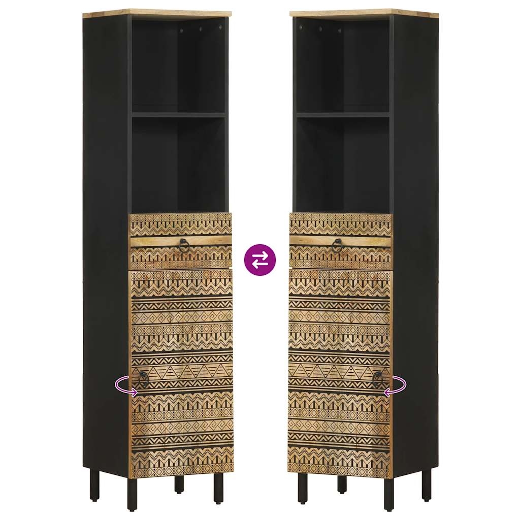 Dieser Badschrank ist eine ausgezeichnete Wahl, um für Ordnung in deinem Badezimmer zu sorgen! Mango-Massivholz: Massives Mangoholz ist ein robustes, tropisches Hartholz, aus dem sich robuste Möbel herstellen lassen. Die optisch ansprechende Holzmaserung macht jedes Möbelstück zu einem Unikat. Der Badschrank ist aus massivem Mangoholz gefertigt und daher langlebig und stabil.Reichlich Stauraum: Der Badezimmerschrank bietet reichlich Stauraum, um wichtige Sachen ordentlich und griffbereit aufzubewahren.Starke Beine: Die Eisenbeine verleihen dem Badschrank zusätzliche Robustheit und Stabilität.Retro-Stil: Mit einem handgeschnitzten Blumenmuster versehen, bringt dieser Beistellschrank den Luxus des Retro-Stils in dein Interieur und wird überall ein echter Hingucker sein. Gut zu wissen:Jedes Stück ist ein Unikat, das in Farbe und Maserung variiert. Die Lieferung erfolgt in zufälliger Reihenfolge, wodurch die Exklusivität und Individualität deines Produkts gewährleistet wird. Achtung:Um ein Umkippen zu vermeiden, sollte dieses Produkt mit der mitgelieferten Wandhalterung gesichert werden.