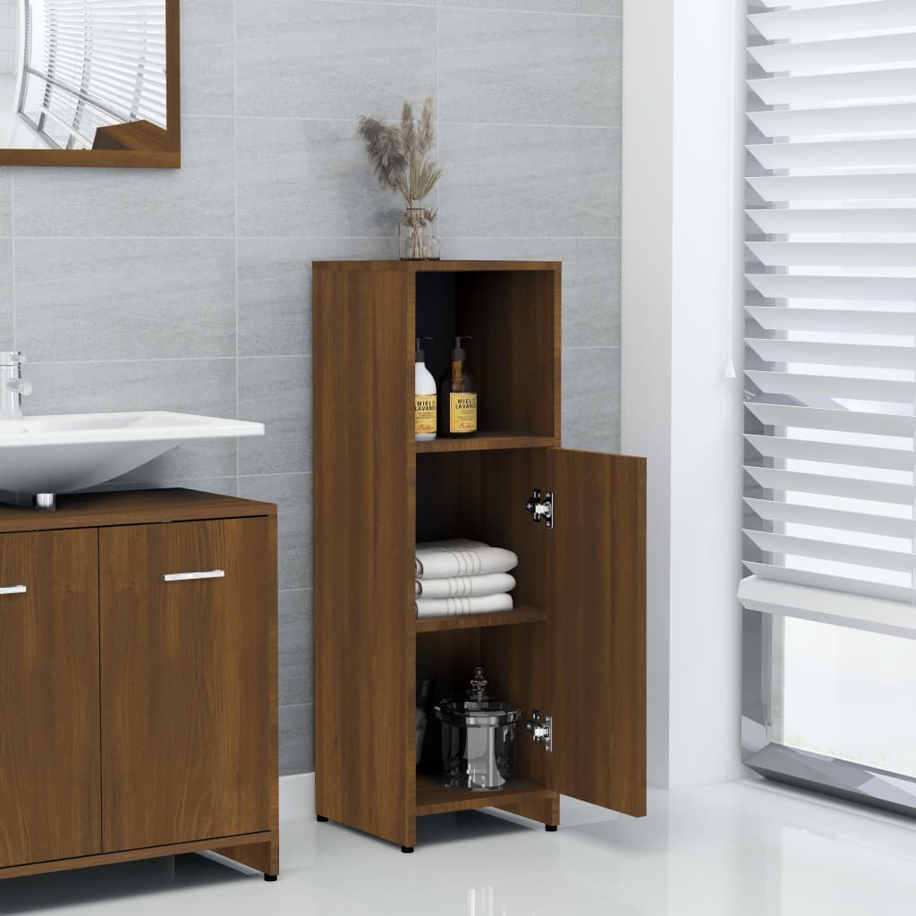 Dieser Badezimmerschrank mit viel Stauraum ist eine großartige Ergänzung für dein Badezimmer und verleiht ihm ein ordentliches und auffälliges Aussehen! Robustes Material: Holzwerkstoff ist ein Material von außergewöhnlicher Qualität mit glatter Oberfläche, das sich durch Festigkeit, Stabilität und Feuchtigkeitsbeständigkeit auszeichnet.Viel Stauraum: Der Badezimmerschrank verfügt über 3 Fächer und eine Tür und schafft dadurch zusätzlichen Stauraum, um verschiedene Sachen in deinem Badezimmer aufzubewahren.Praktisches Design: Die Tür ist mit einem Griff versehen, der das Öffnen und Schließen erleichtert. Achtung:Um das Umkippen zu verhindern, muss dieses Produkt mit der mitgelieferten Wandhalterung gesichert werden. Hinweis:Jedes Produkt wird mit einer Montageanleitung in der Verpackung für eine einfache Montage geliefert.